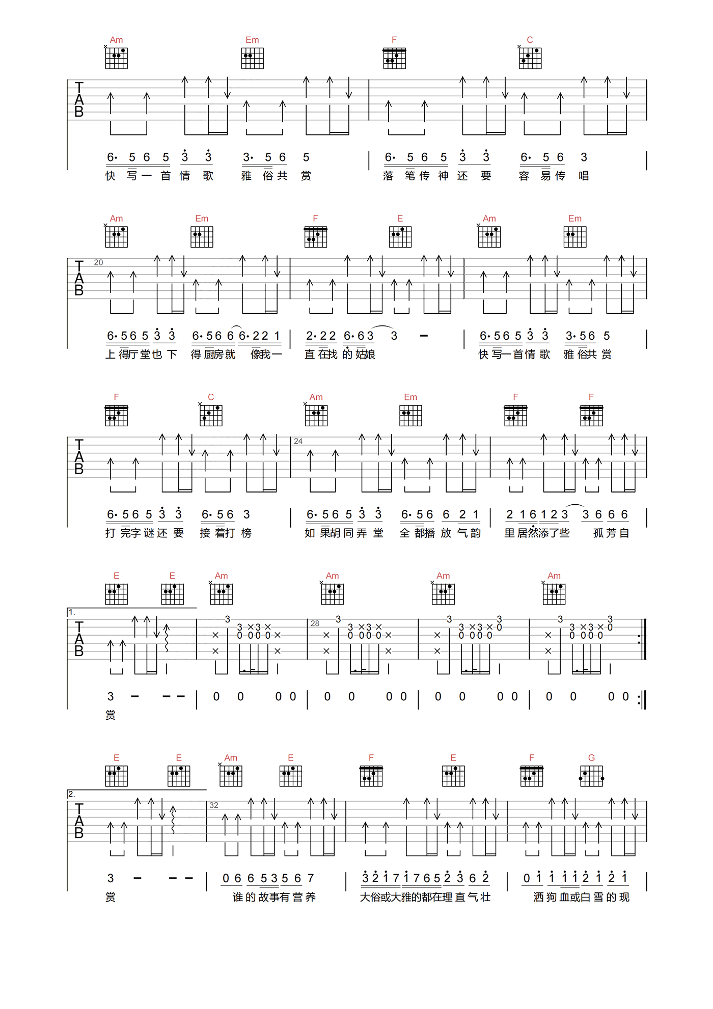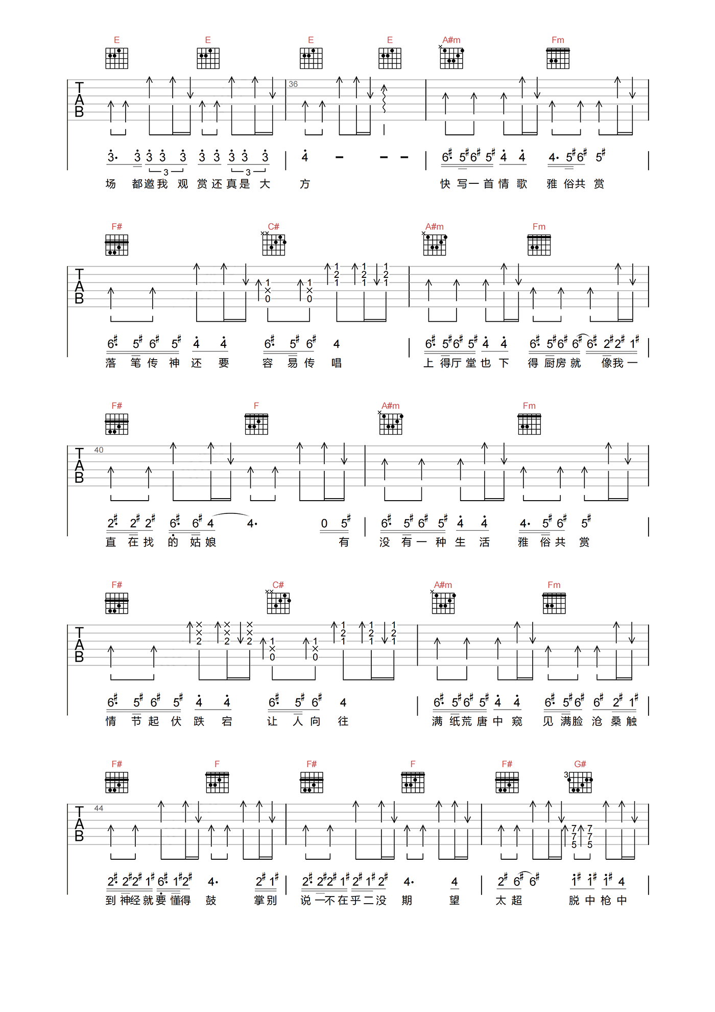 当前位置:琴谱网>吉他弹唱>雅俗共赏