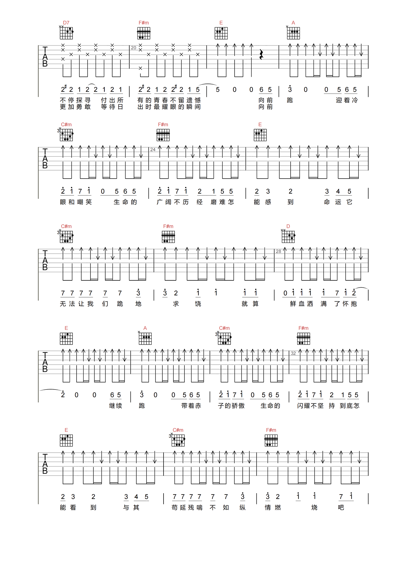 当前位置:琴谱网>吉他弹唱>追梦赤子心