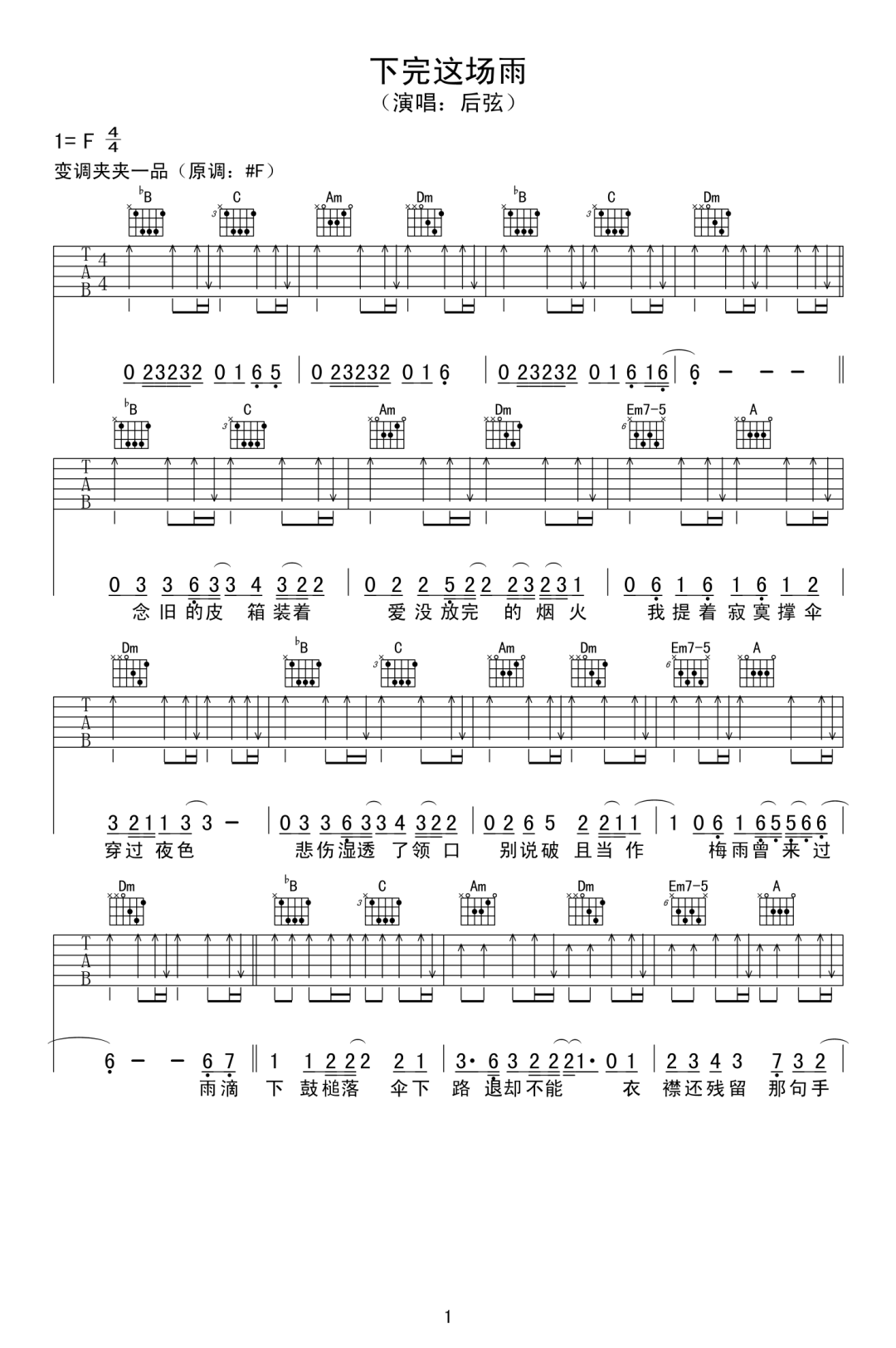 下完这场雨吉他谱 - 后弦 - F调吉他弹唱谱