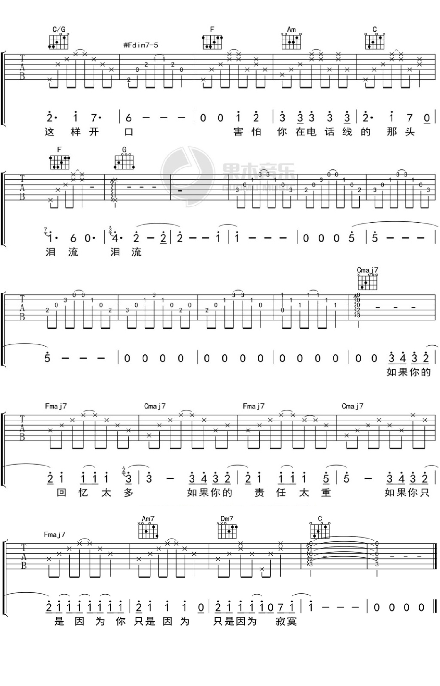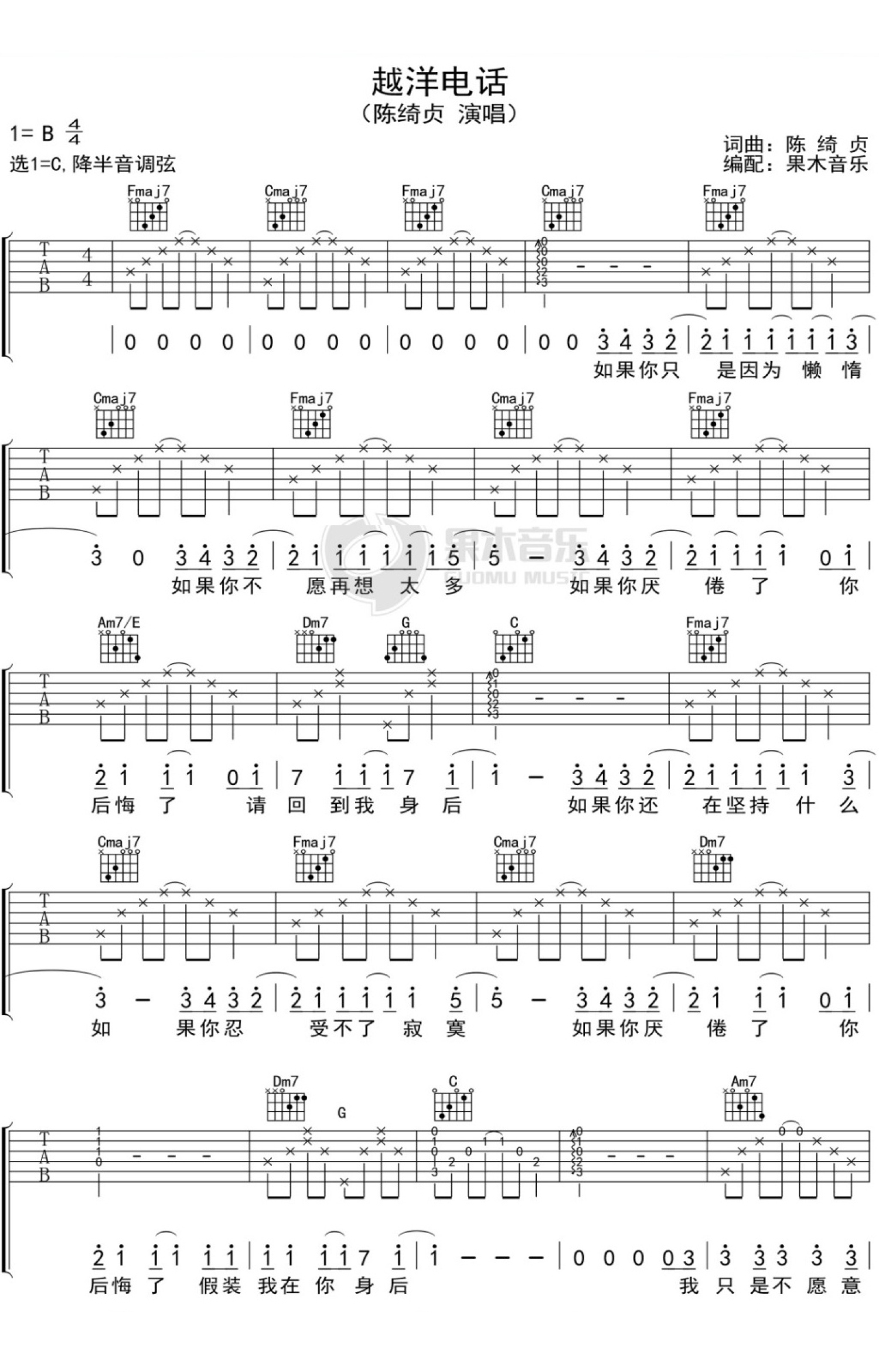 当前位置:琴谱网>吉他弹唱>越洋电话