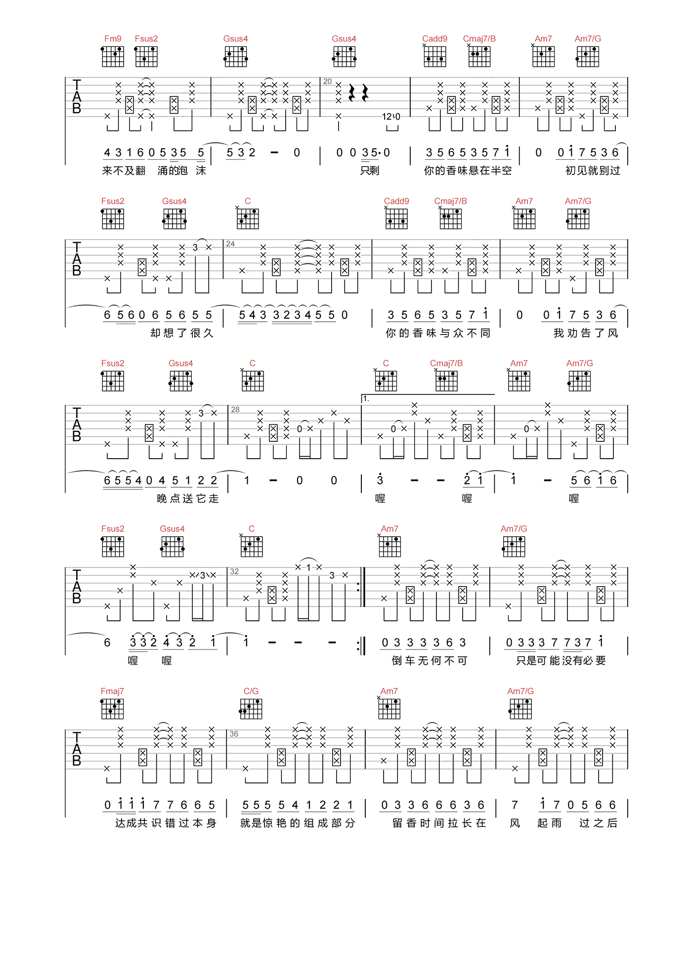 留香吉他谱 - 许嵩 - C调吉他弹唱谱 - 原版