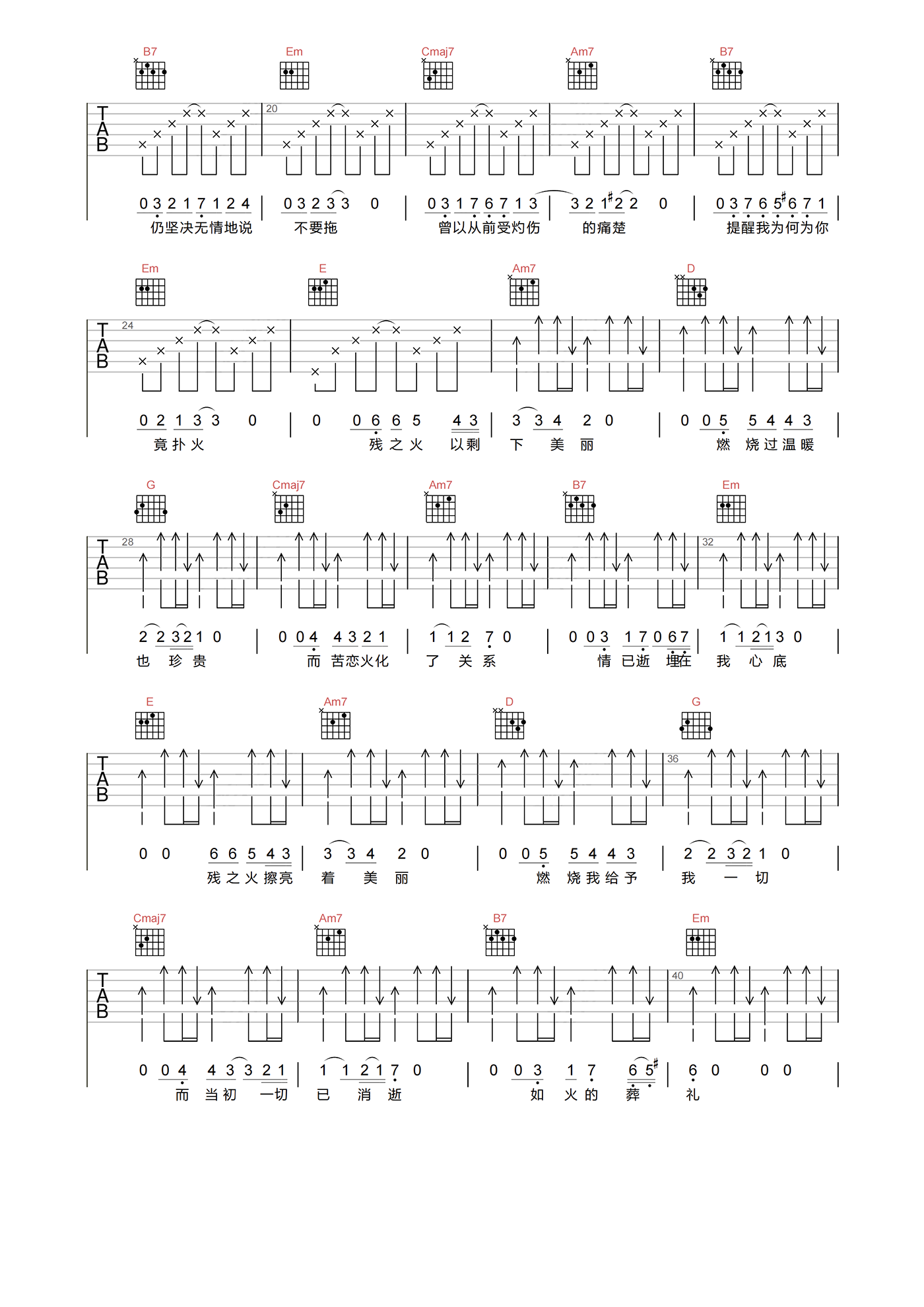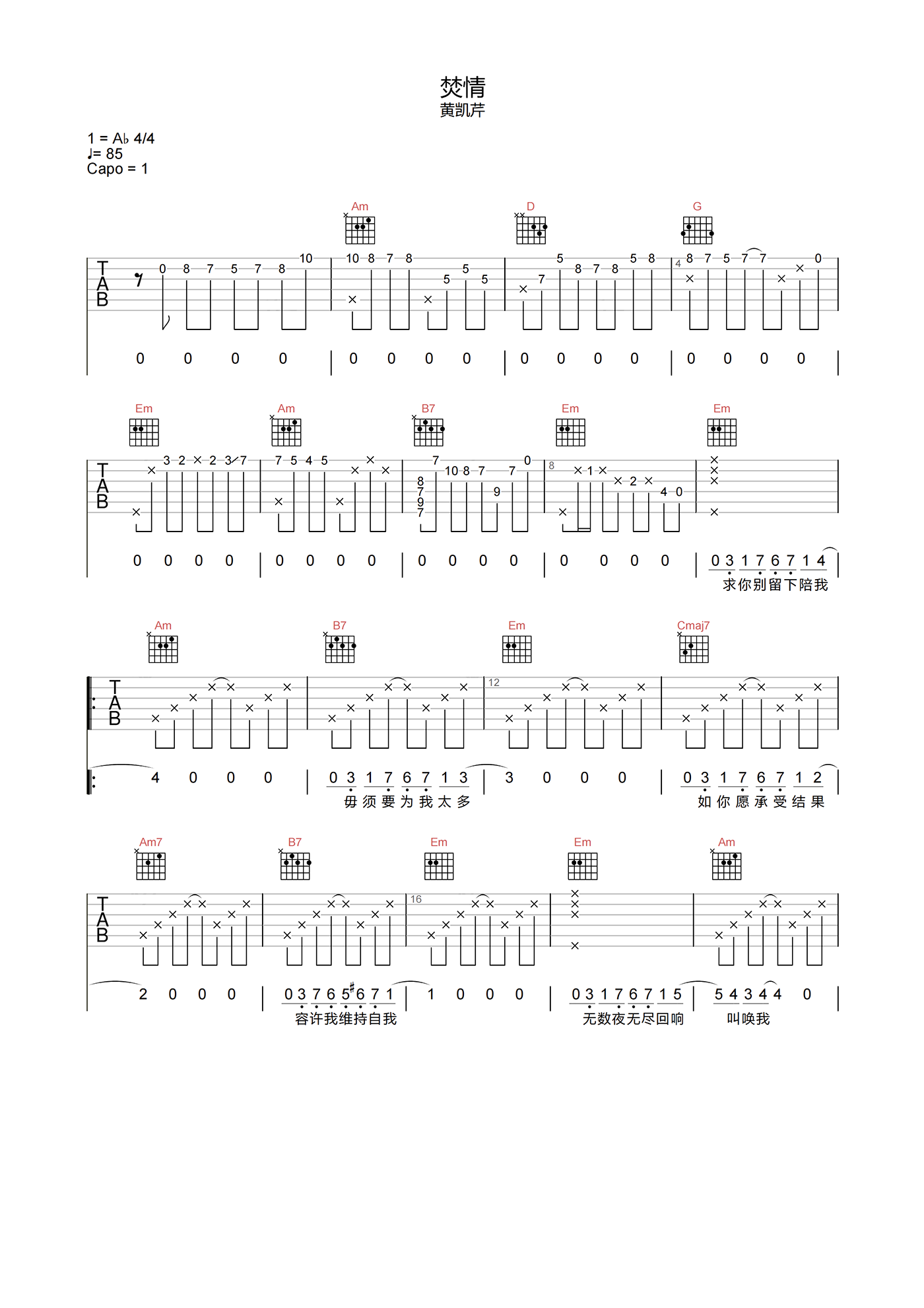 焚情吉他谱 - 黄凯芹 - G调吉他弹唱谱 - 原版