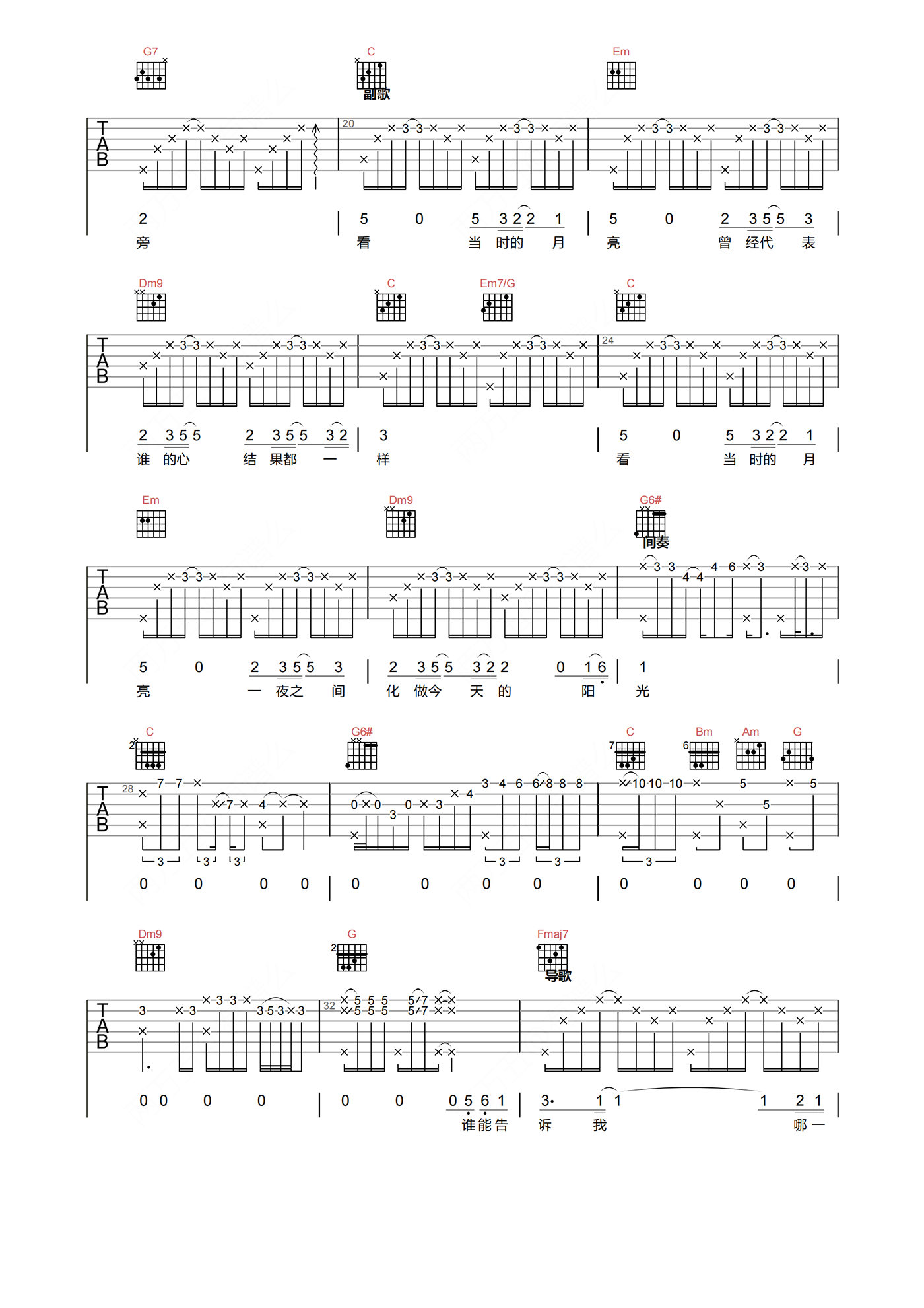 当前位置:琴谱网>吉他弹唱>当时的月亮