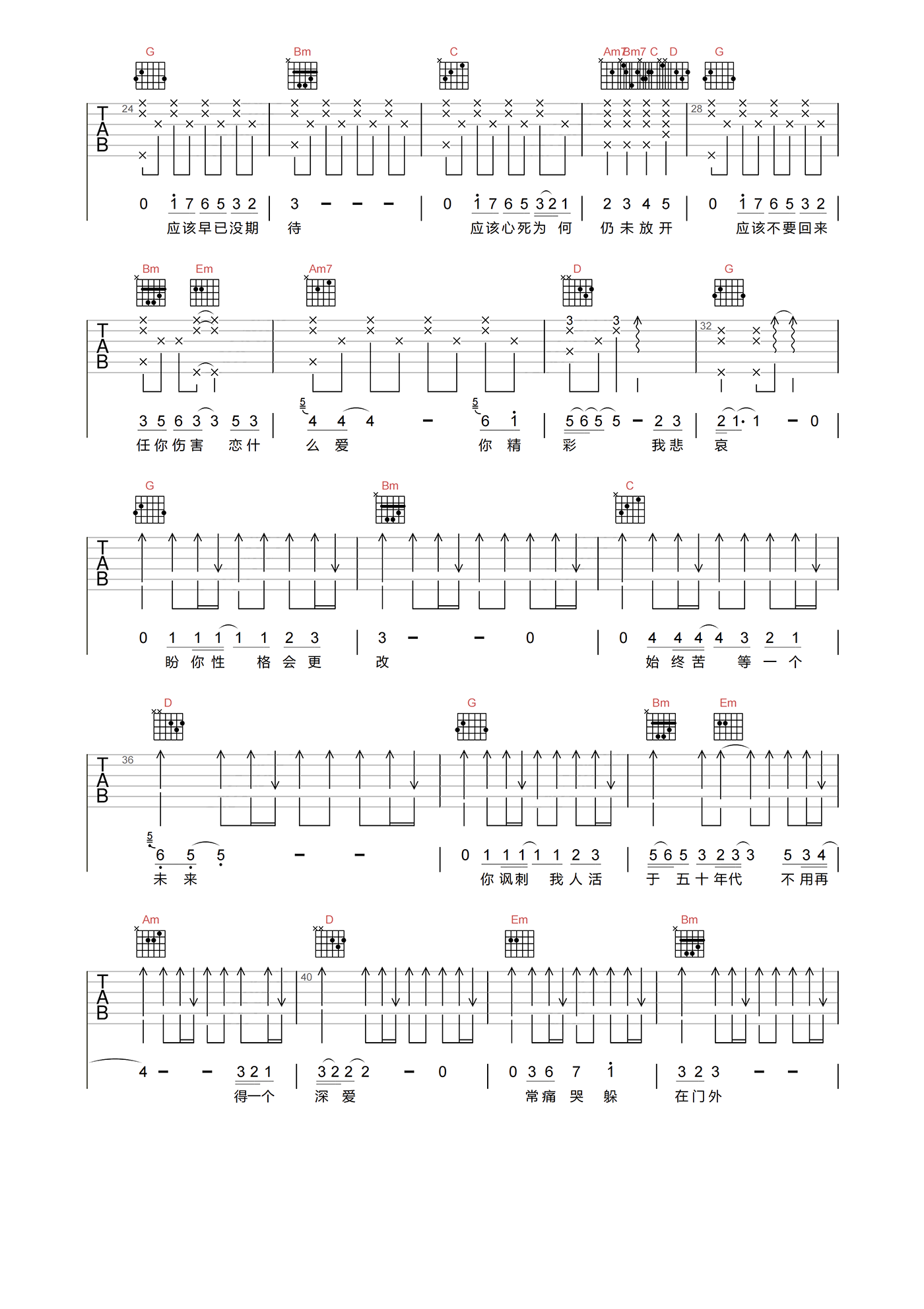 我应该吉他谱 - 张学友 - G调吉他弹唱谱 - 原版