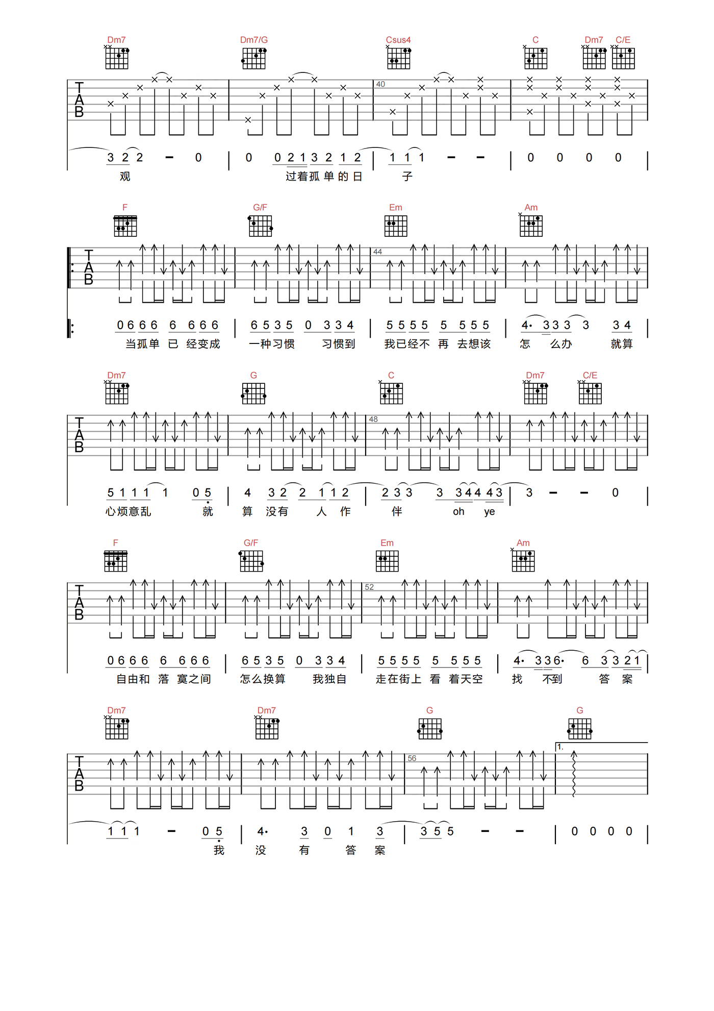 当前位置:琴谱网>吉他弹唱>一辈子的孤单