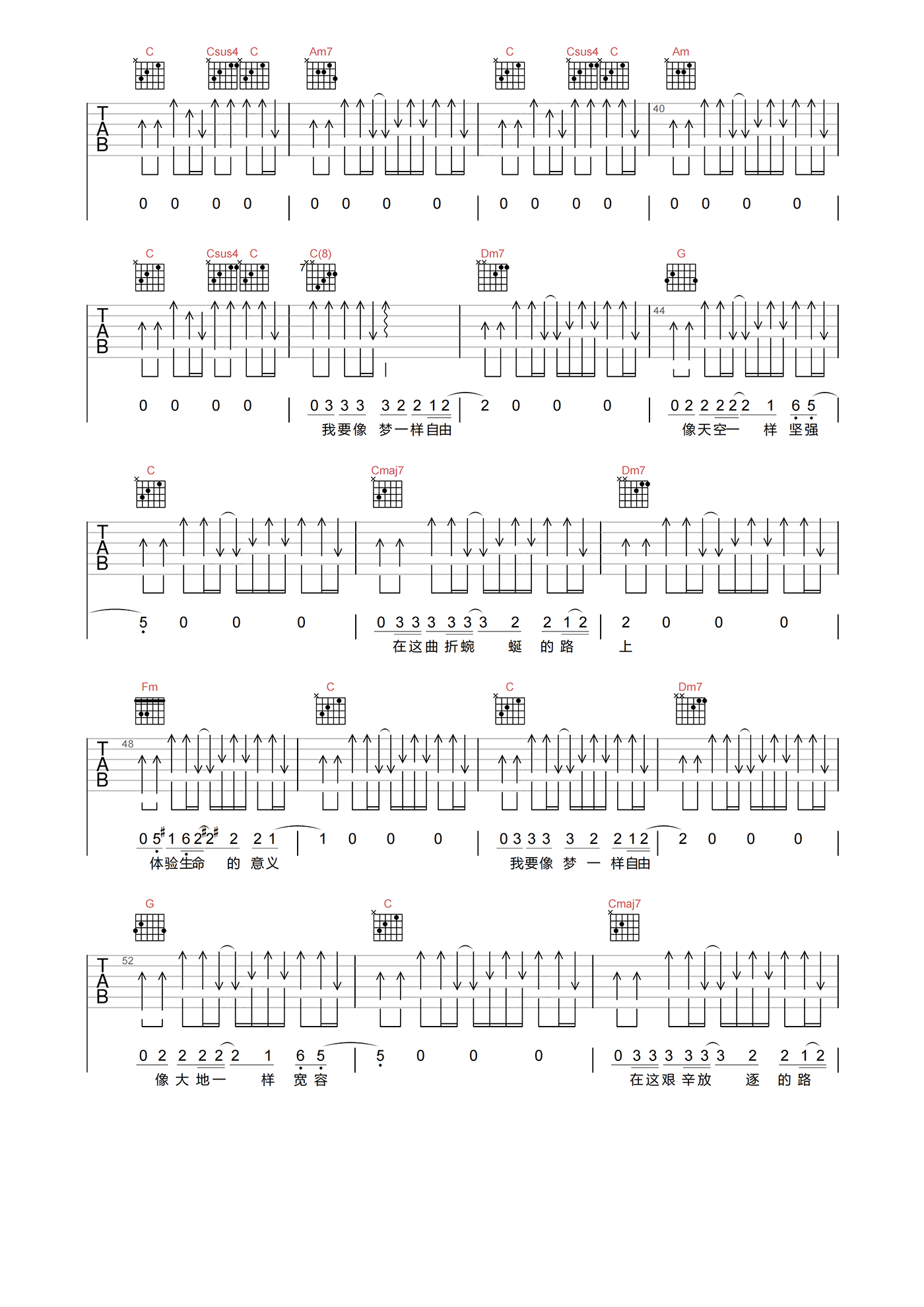 像梦一样自由吉他谱 - 汪峰 - C调吉他弹唱谱 - 原版
