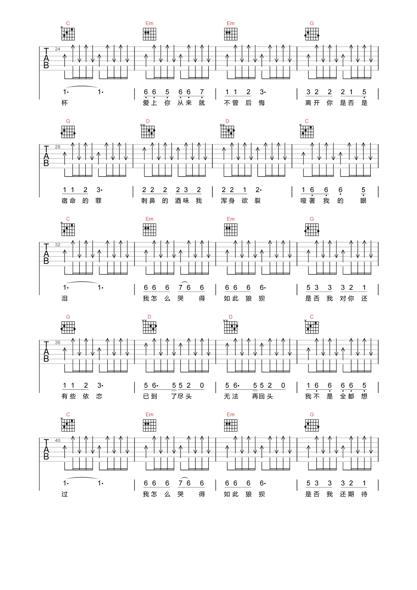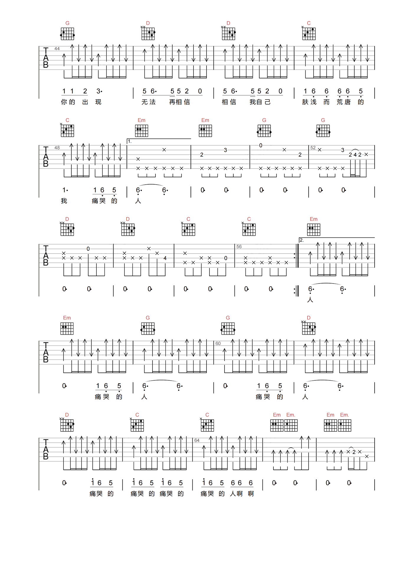 当前位置:琴谱网>吉他弹唱>痛哭的人