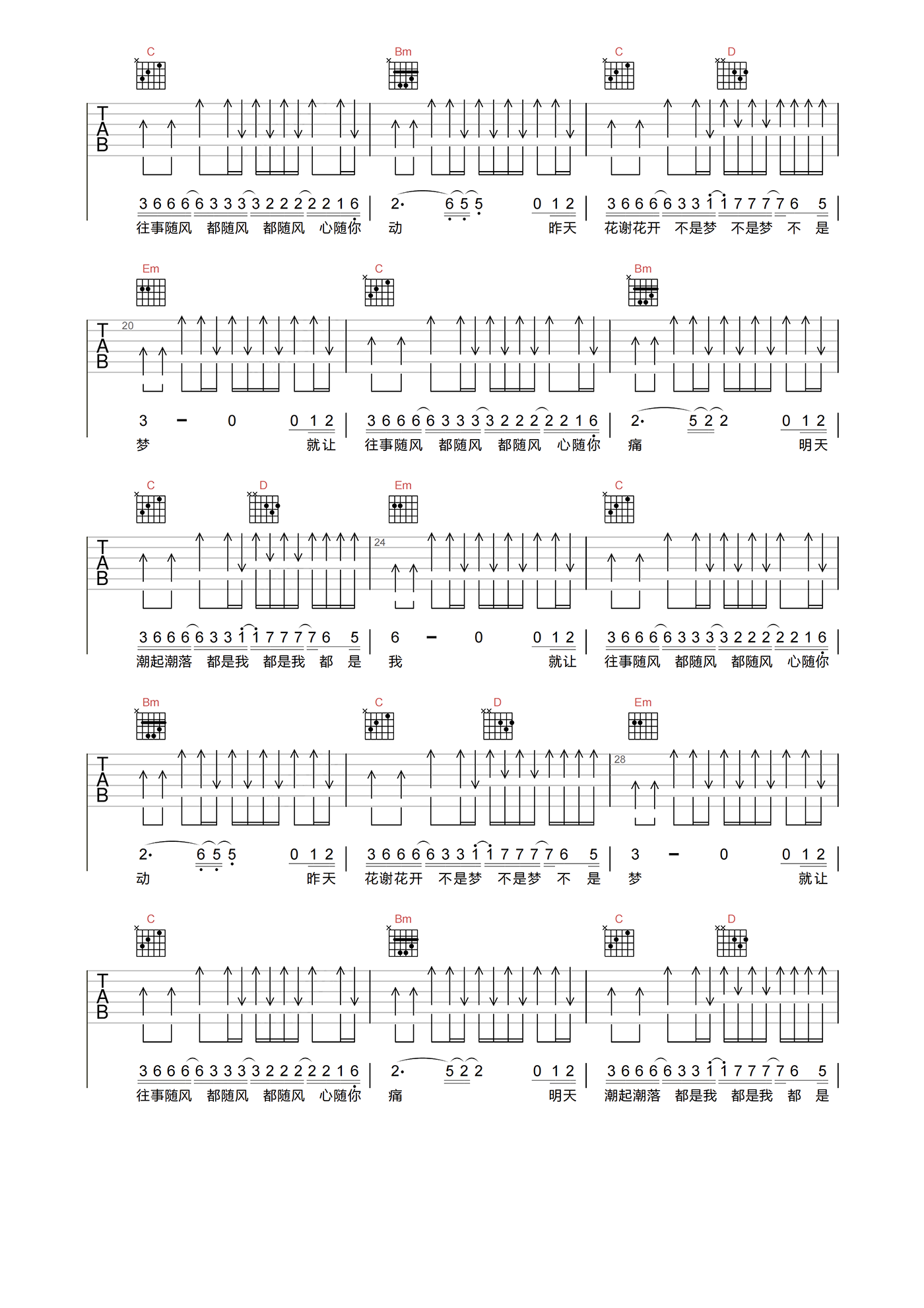 当前位置:琴谱网>吉他弹唱>往事随风