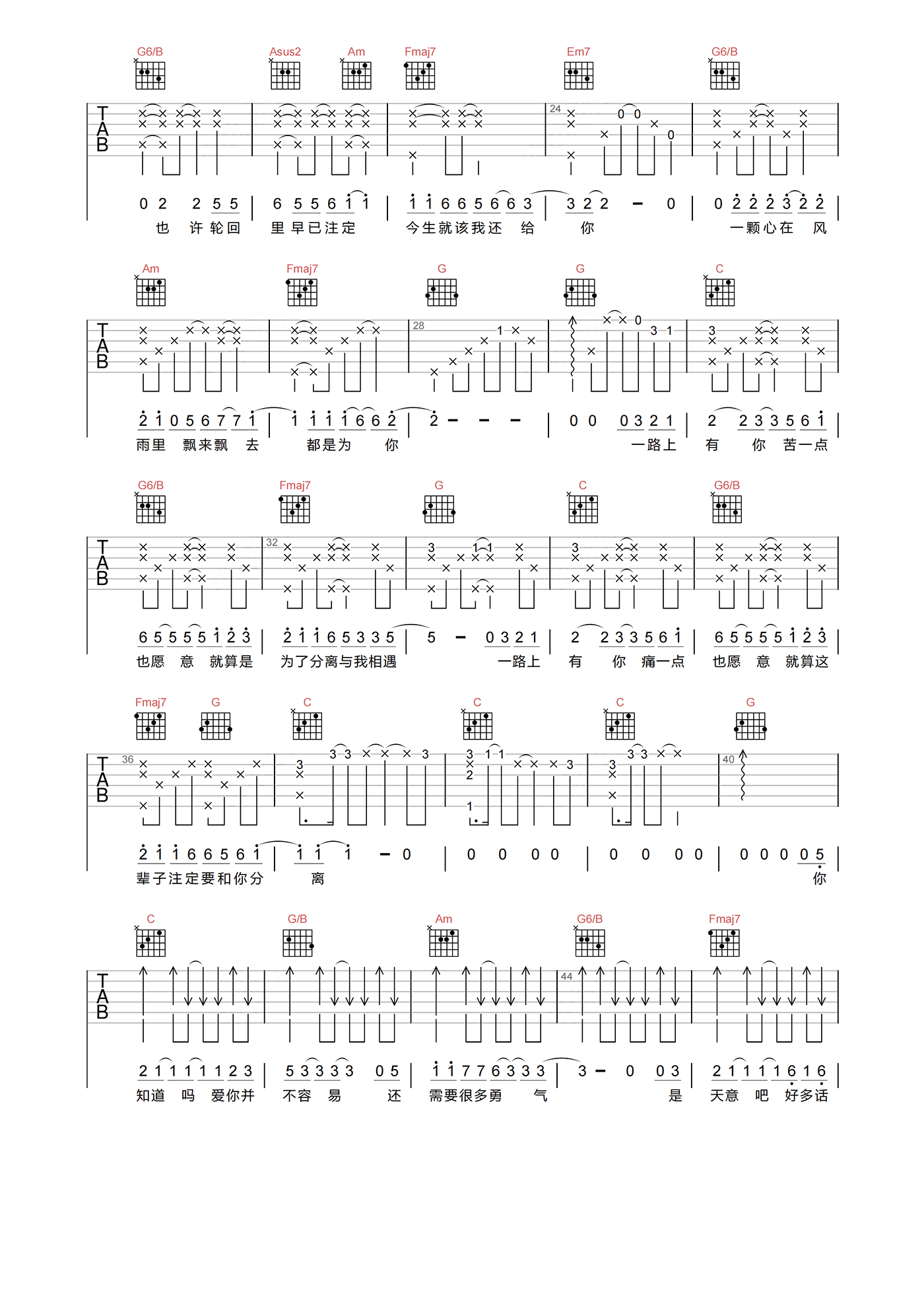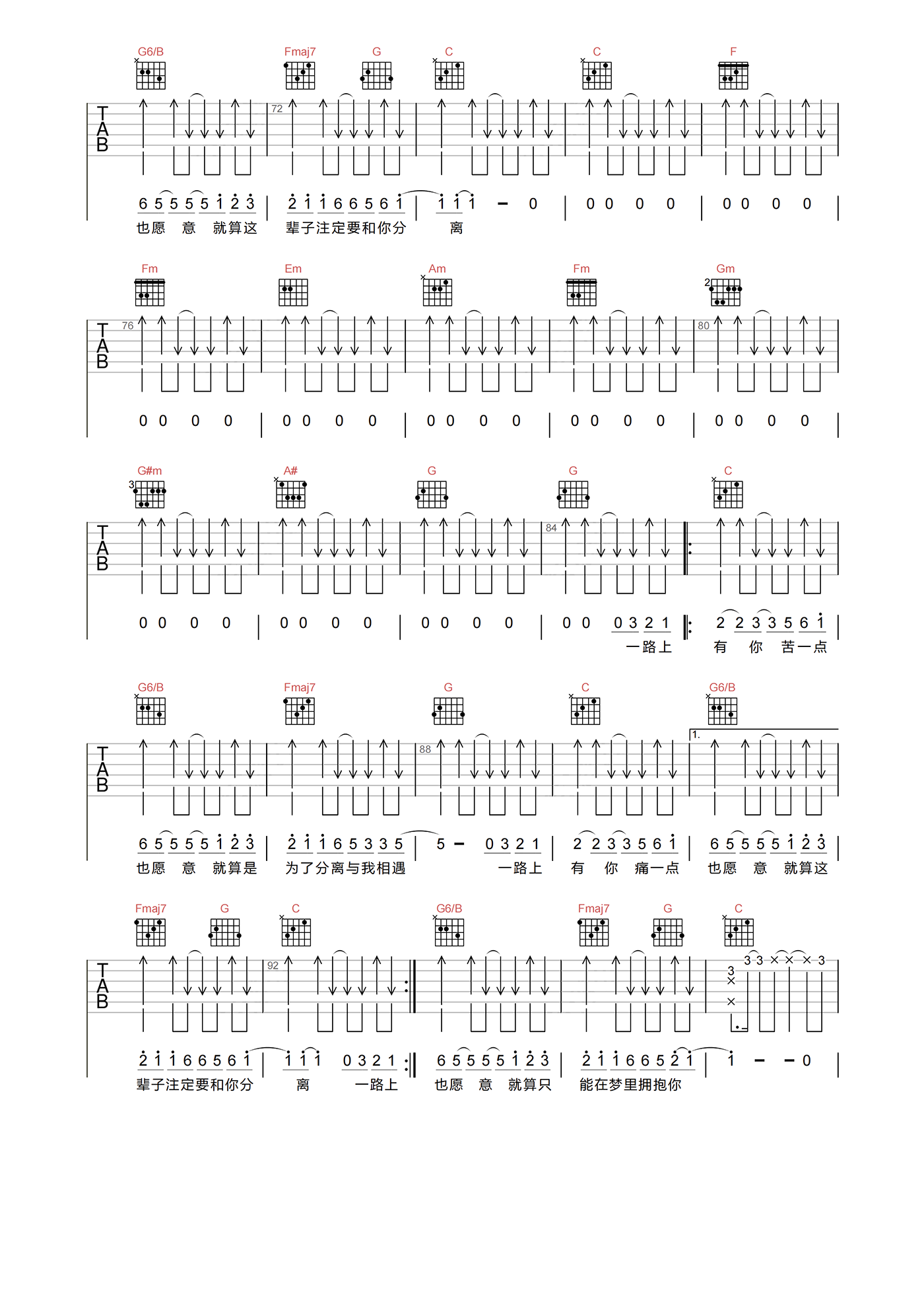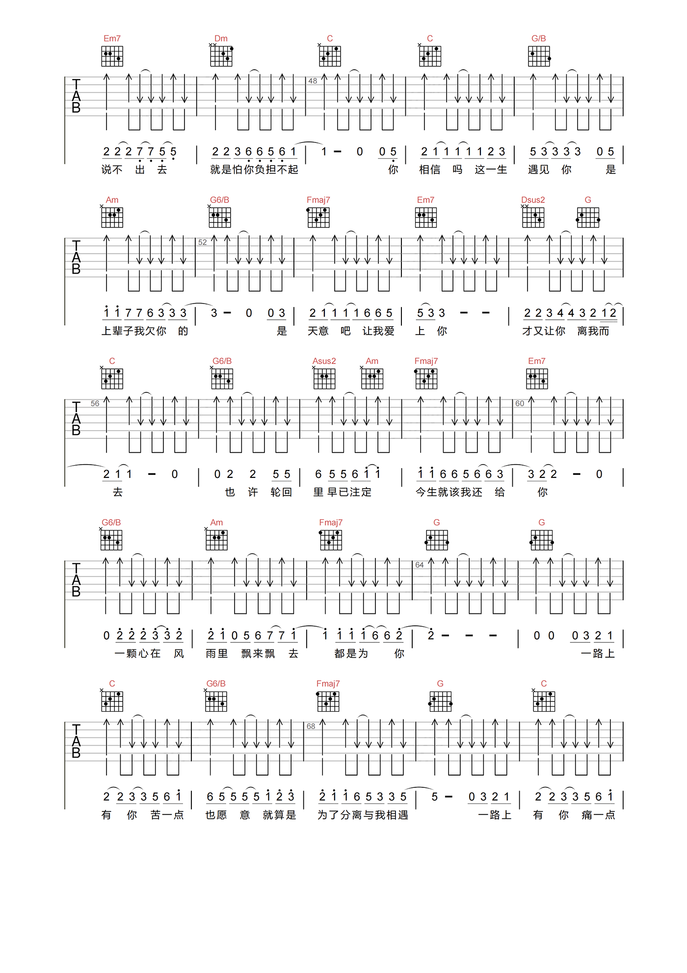 当前位置:琴谱网>吉他弹唱>一路上有你
