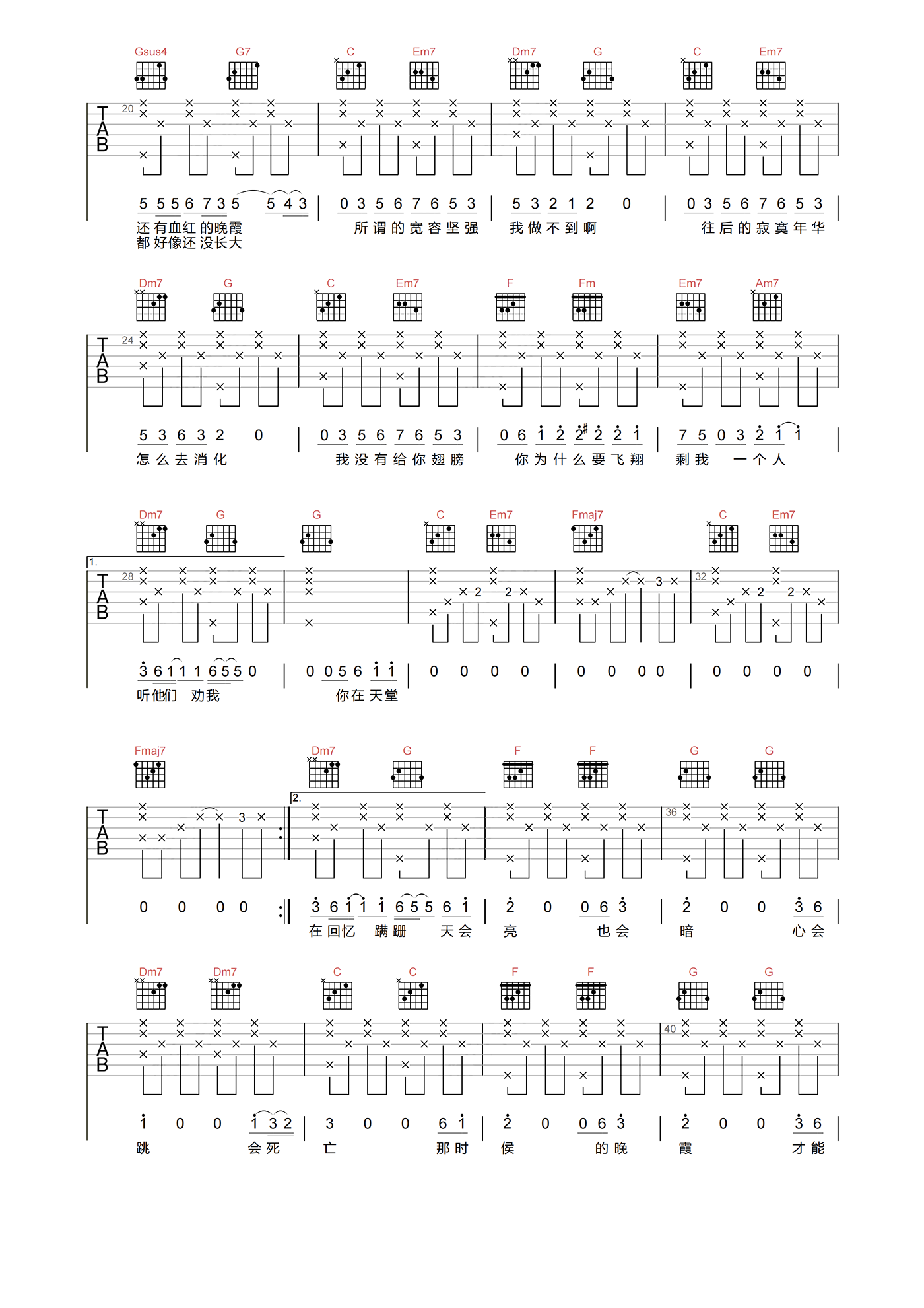 当前位置:琴谱网>吉他弹唱>早开的晚霞