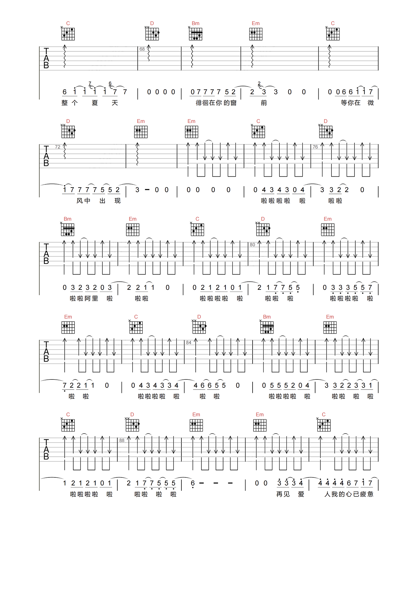 当前位置:琴谱网>吉他弹唱>完美夏天