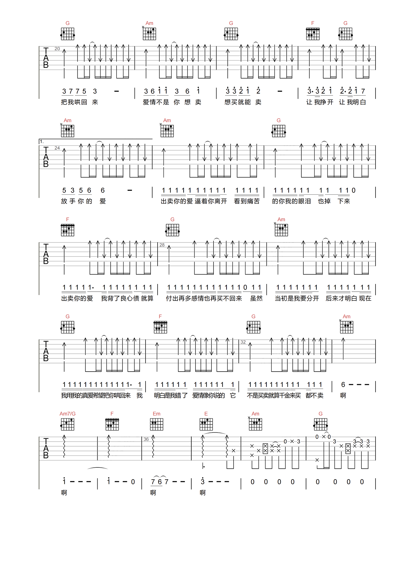 当前位置:琴谱网>吉他弹唱>爱情买卖