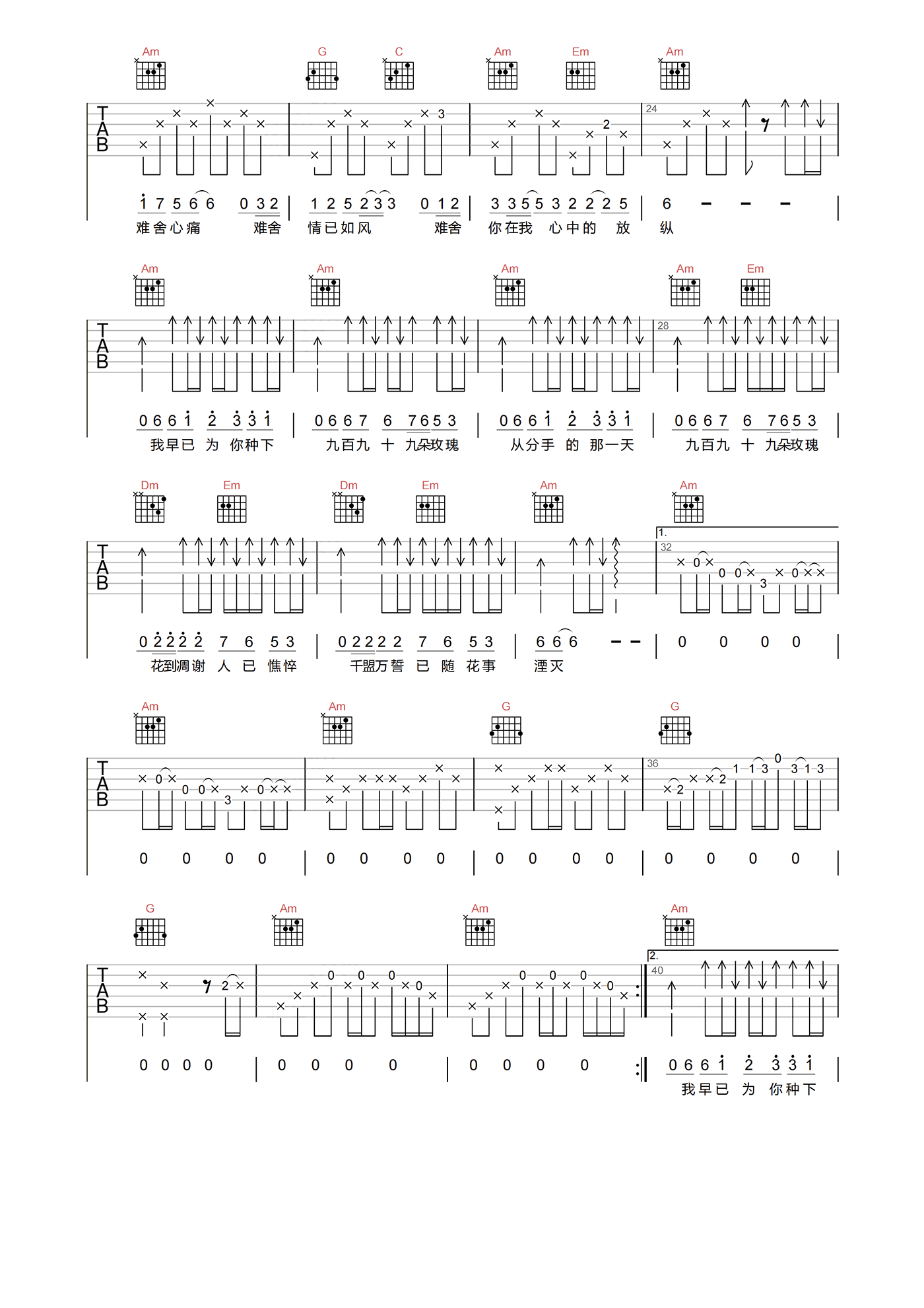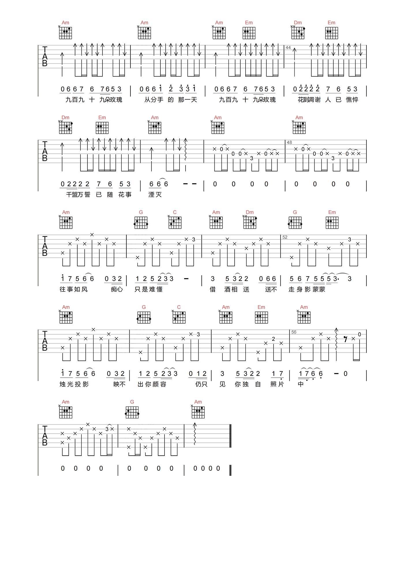 当前位置:琴谱网>吉他弹唱>九百九十九朵玫瑰