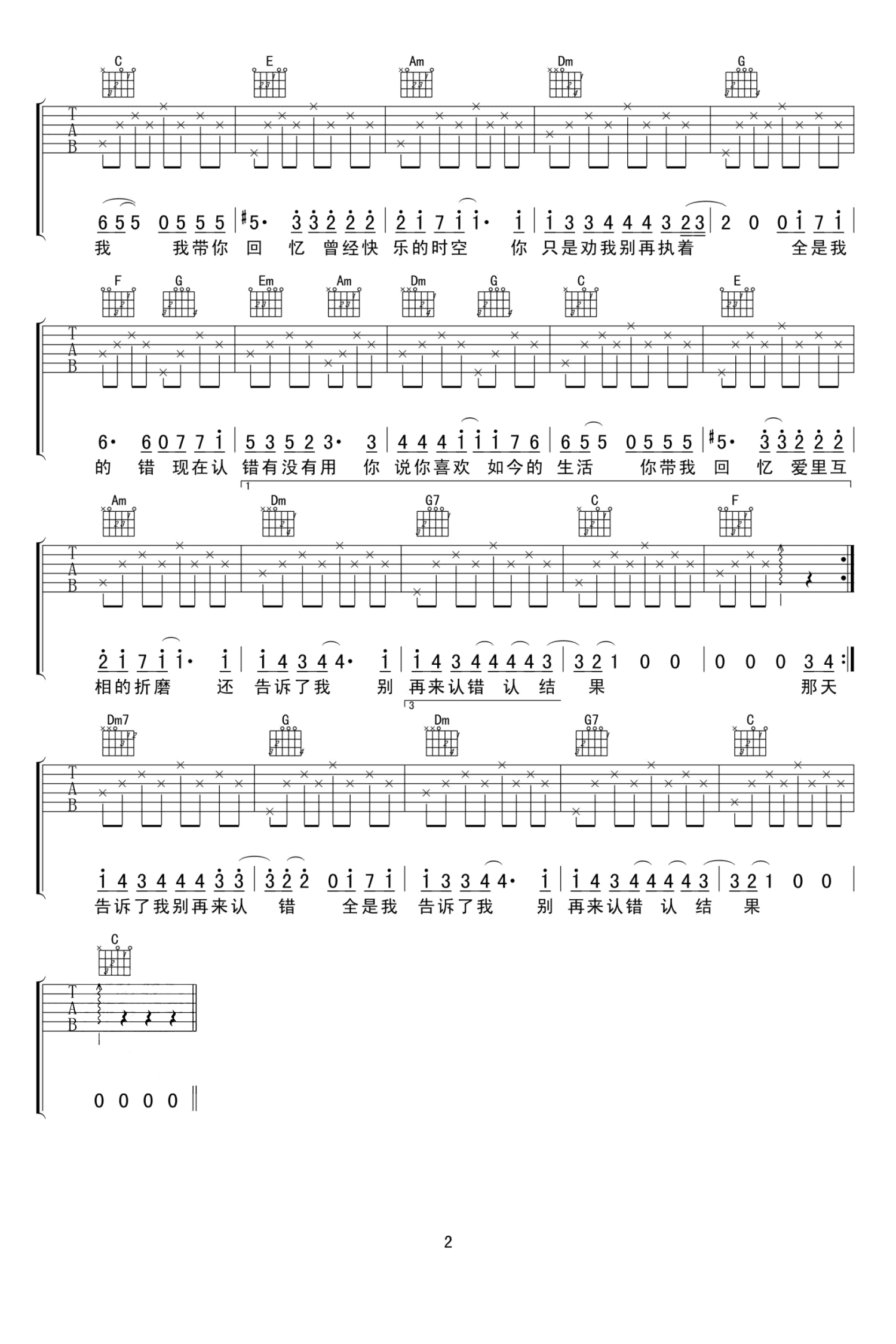认错吉他谱 - 许嵩 - C调吉他弹唱谱