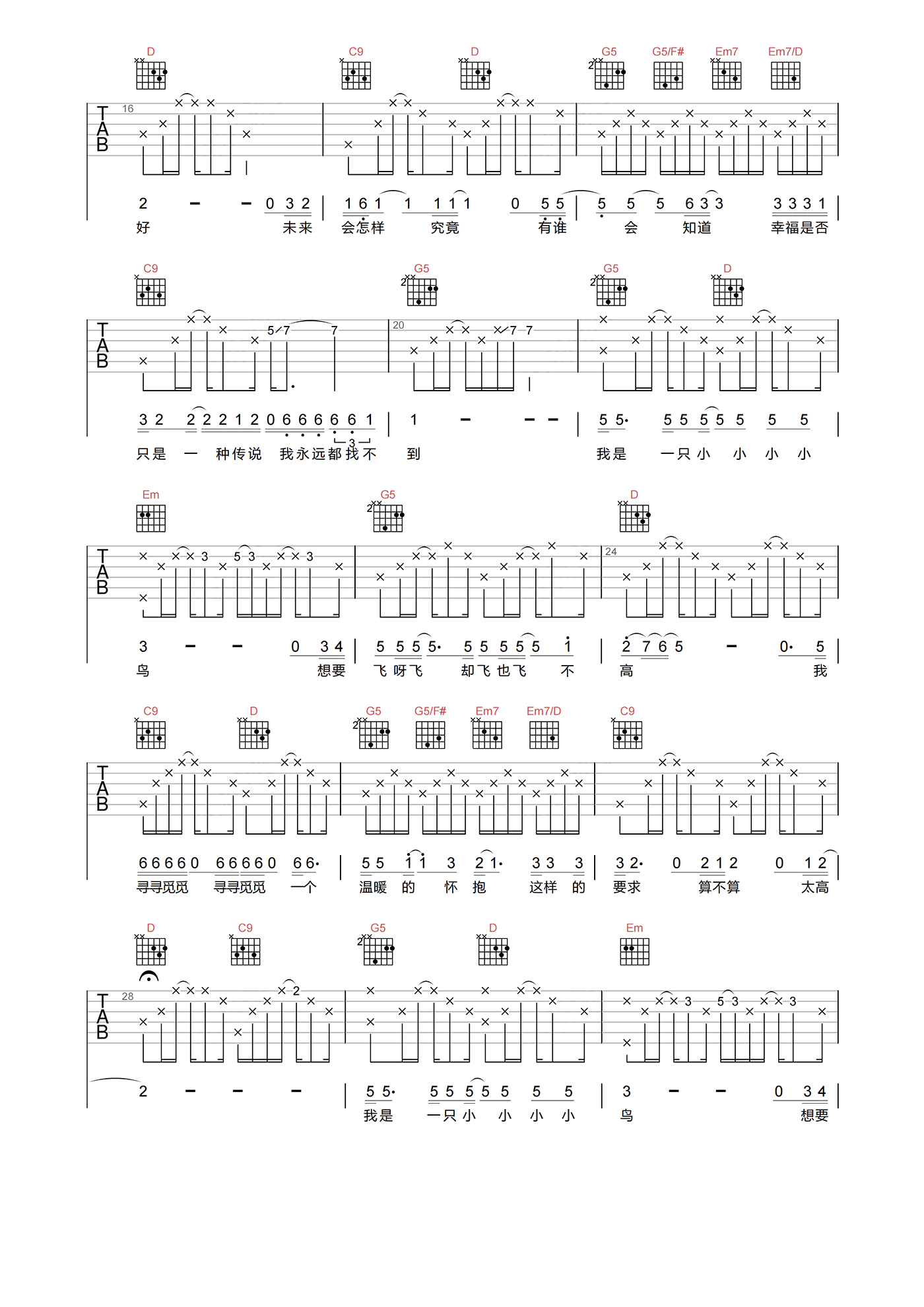 当前位置:琴谱网>吉他弹唱>我是一只小小鸟