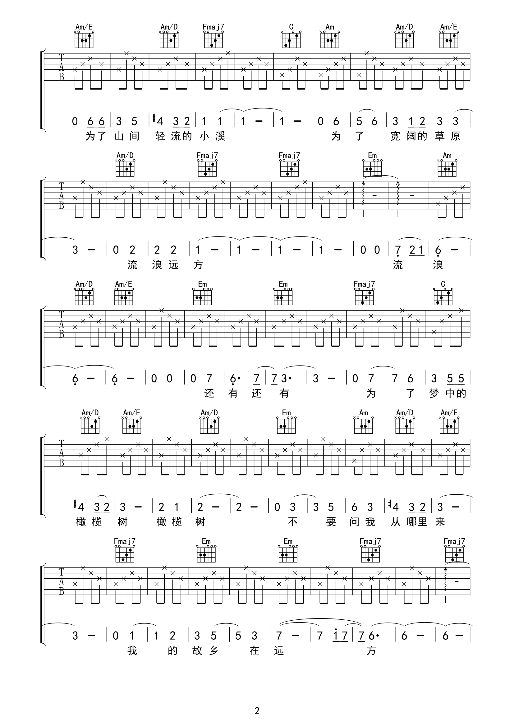 当前位置:琴谱网>吉他弹唱>橄榄树