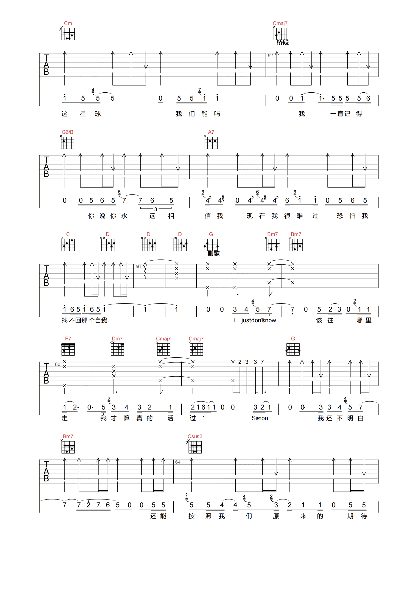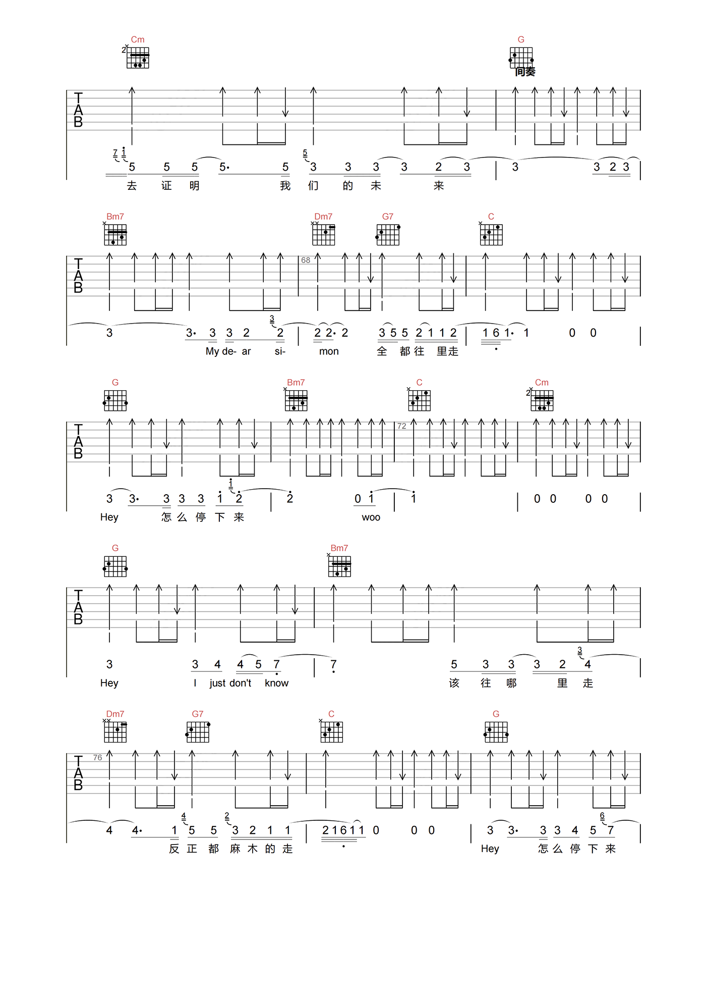 SIMON吉他谱 - 丁世光 - G调吉他弹唱谱 - 原版