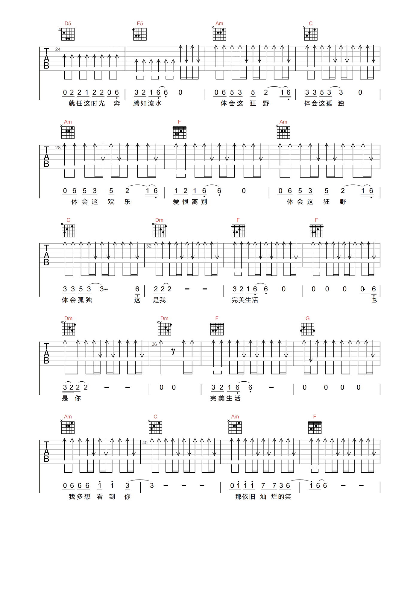 当前位置:琴谱网>吉他弹唱>完美生活