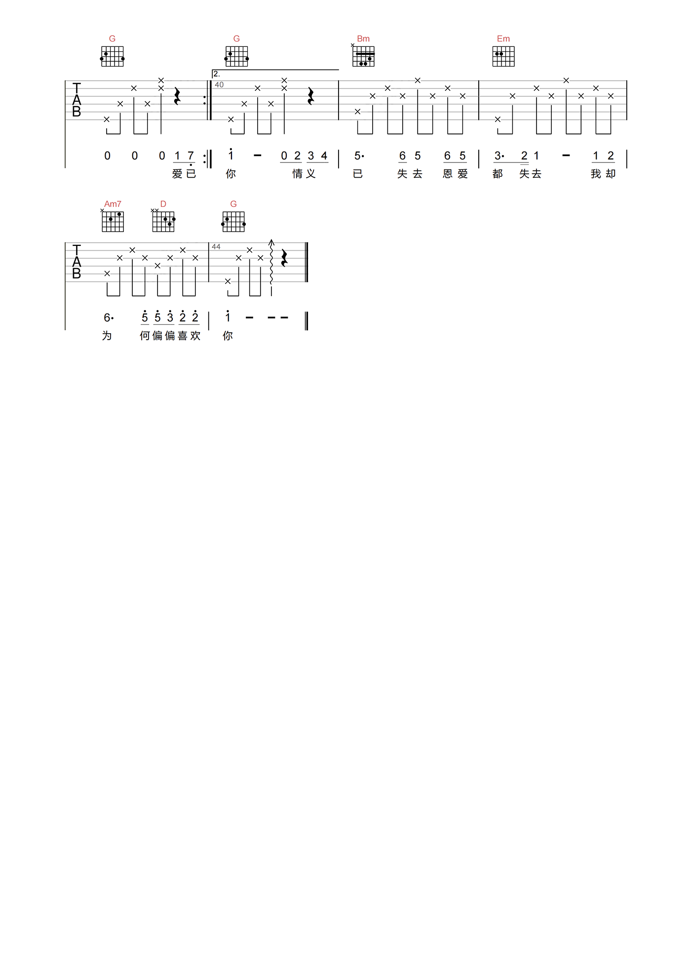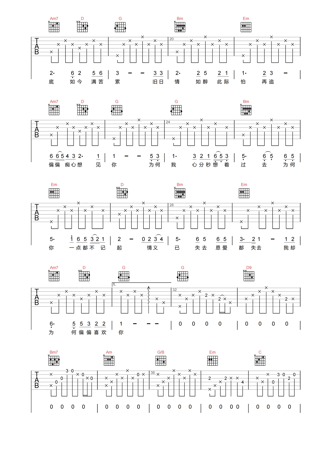 当前位置:琴谱网>吉他弹唱>偏偏喜欢你