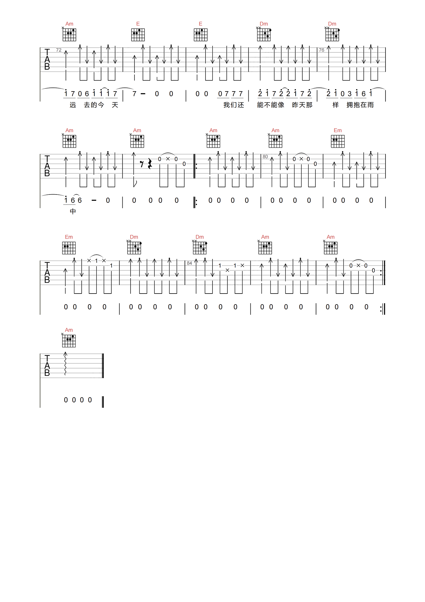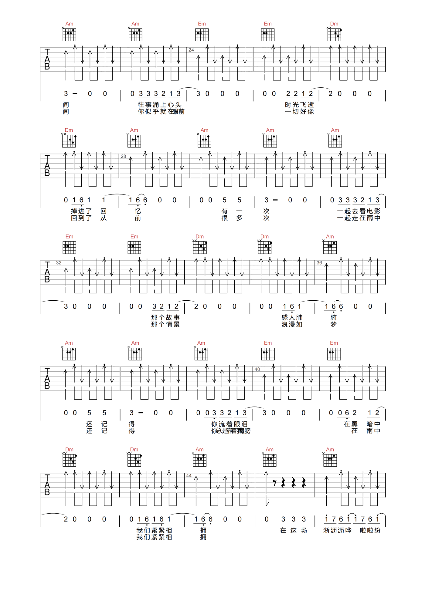 当前位置:琴谱网>吉他弹唱>在雨中