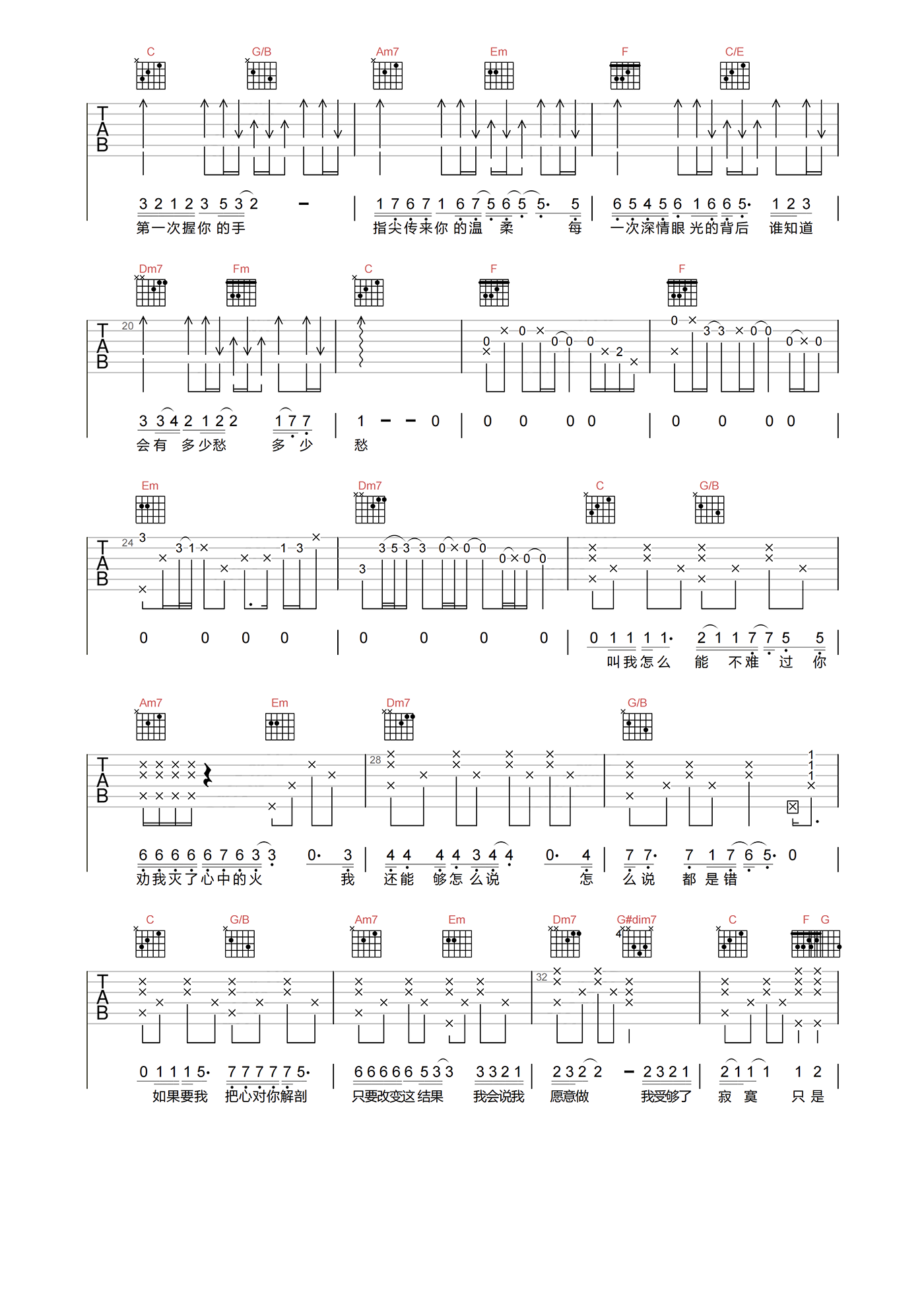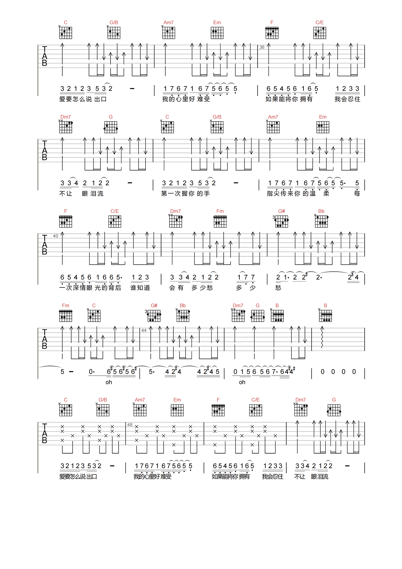 当前位置:琴谱网>吉他弹唱>爱要怎么说出口