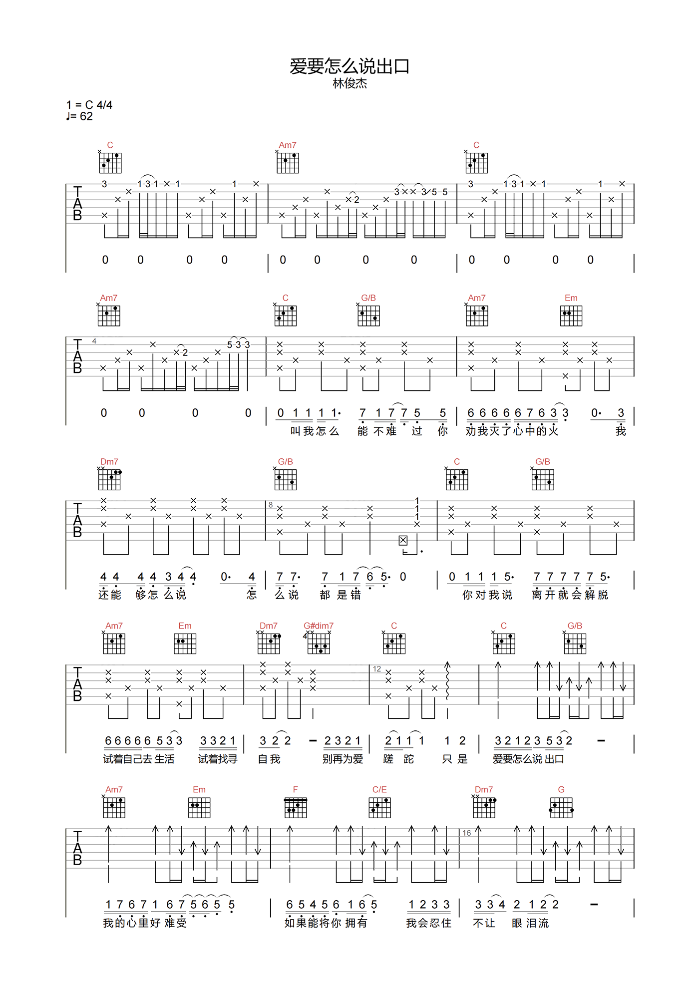 爱要怎么说出口吉他谱 - 林俊杰 - C调吉他弹唱谱 - 原版