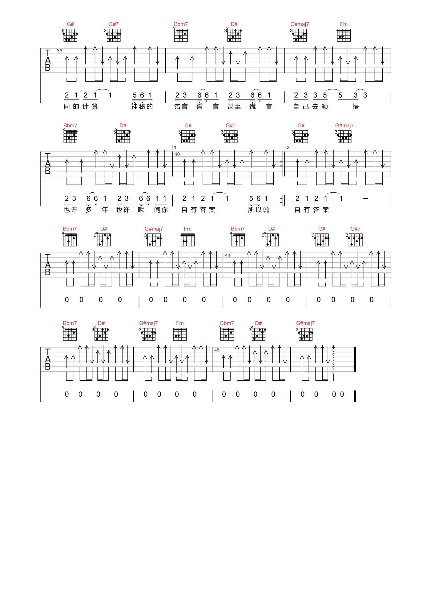 当前位置:琴谱网>吉他弹唱>答案