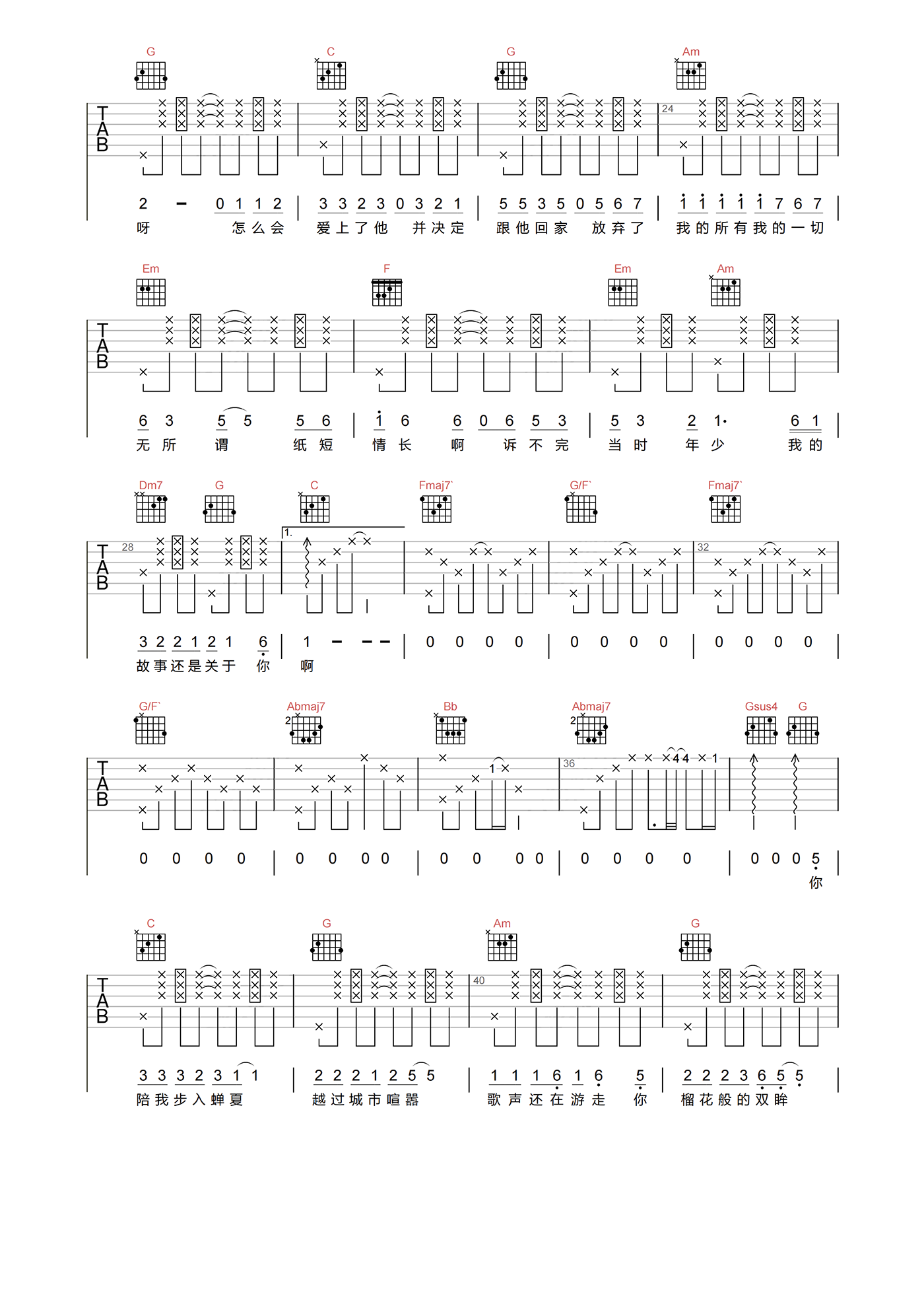 当前位置:琴谱网>吉他弹唱>纸短情长