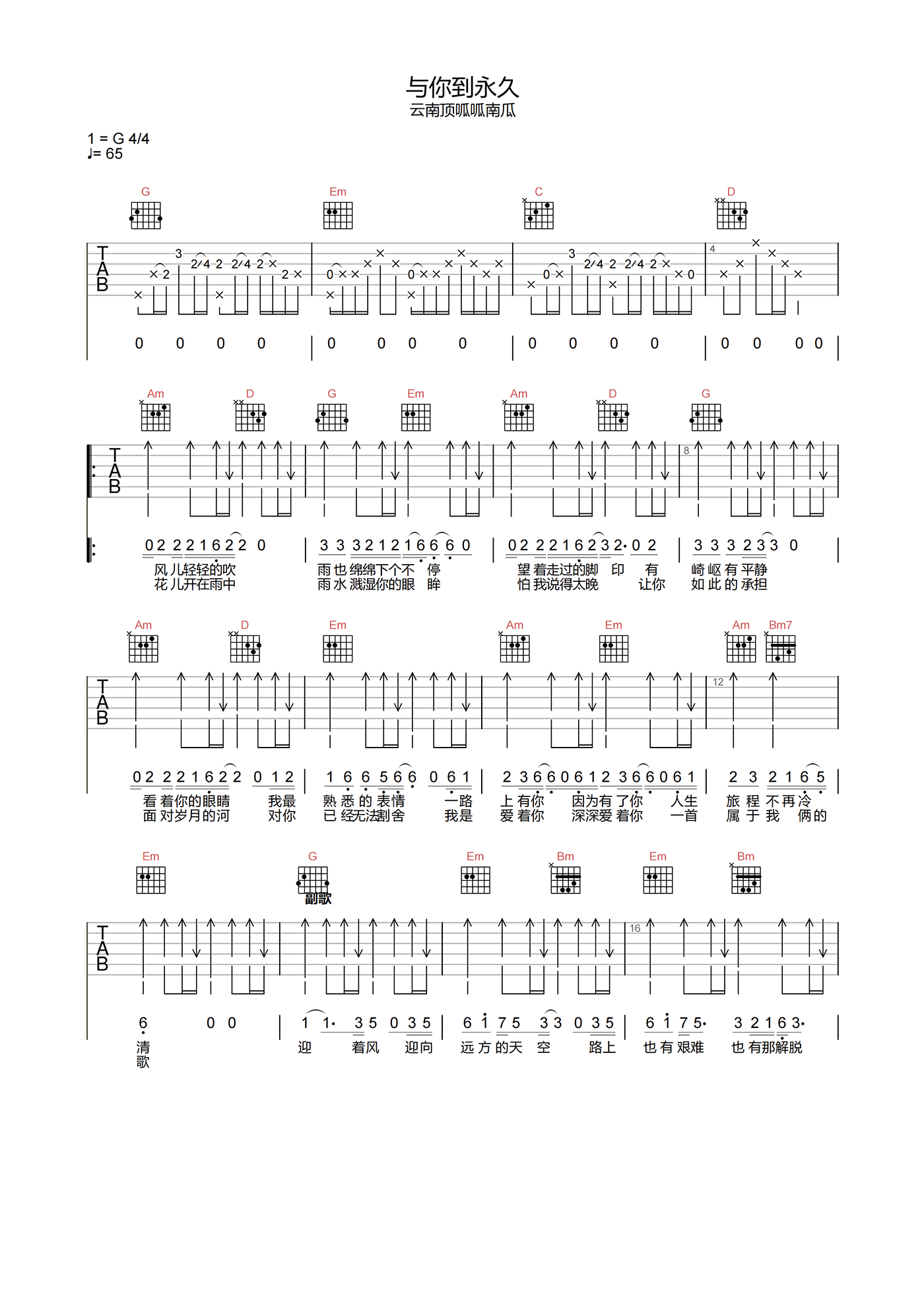 与你到永久吉他谱 - 云南顶呱呱南瓜 - G调吉他弹唱谱 - 原版