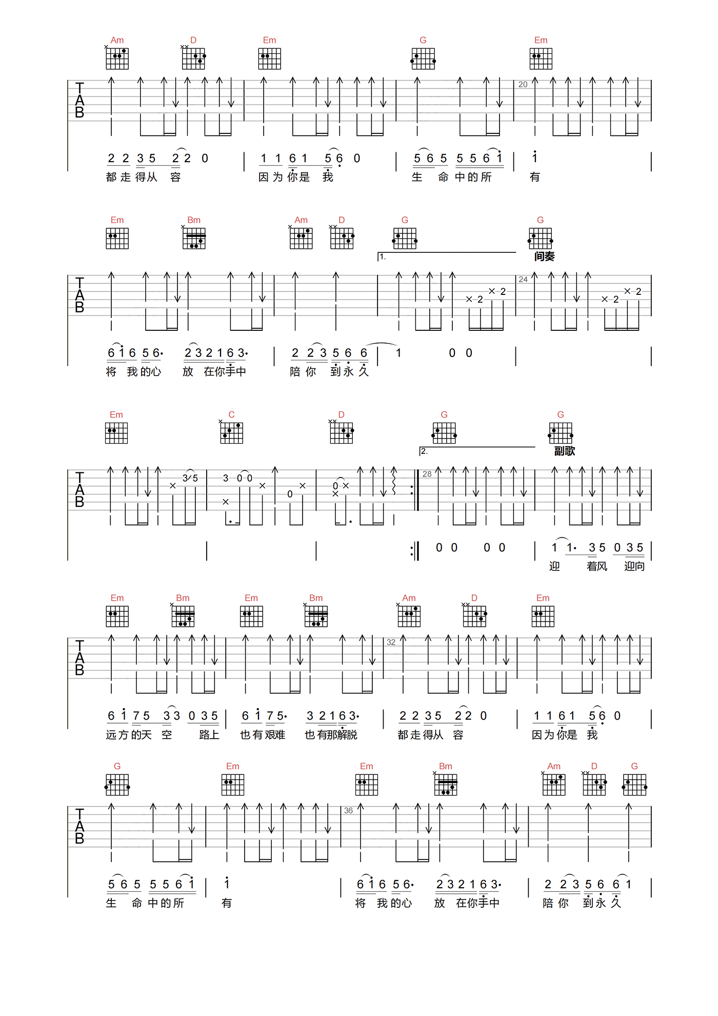 当前位置:琴谱网>吉他弹唱>与你到永久