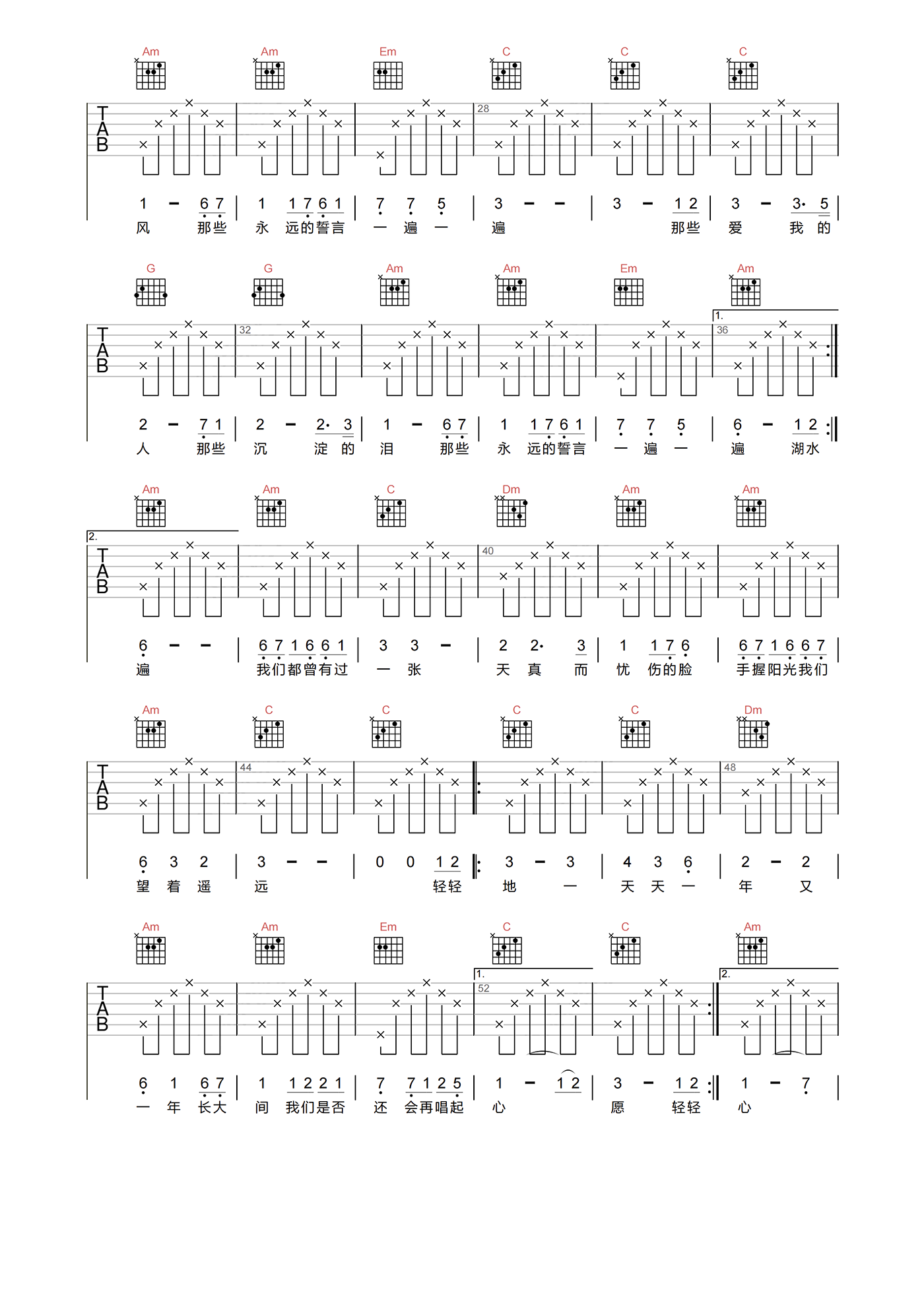 当前位置:琴谱网>吉他弹唱>心愿