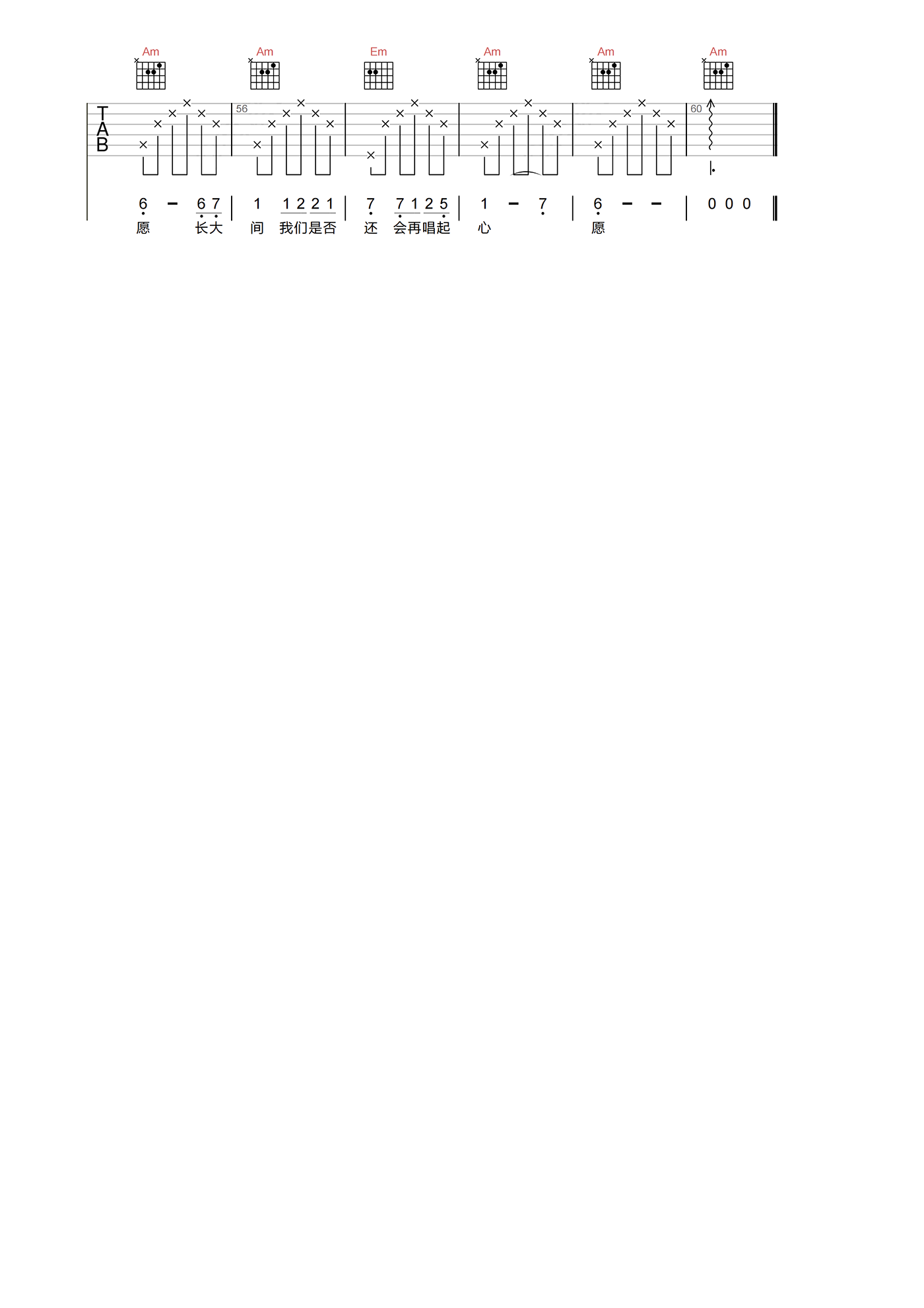 心愿吉他谱 - 四个女生 - C调吉他弹唱谱 - 原版
