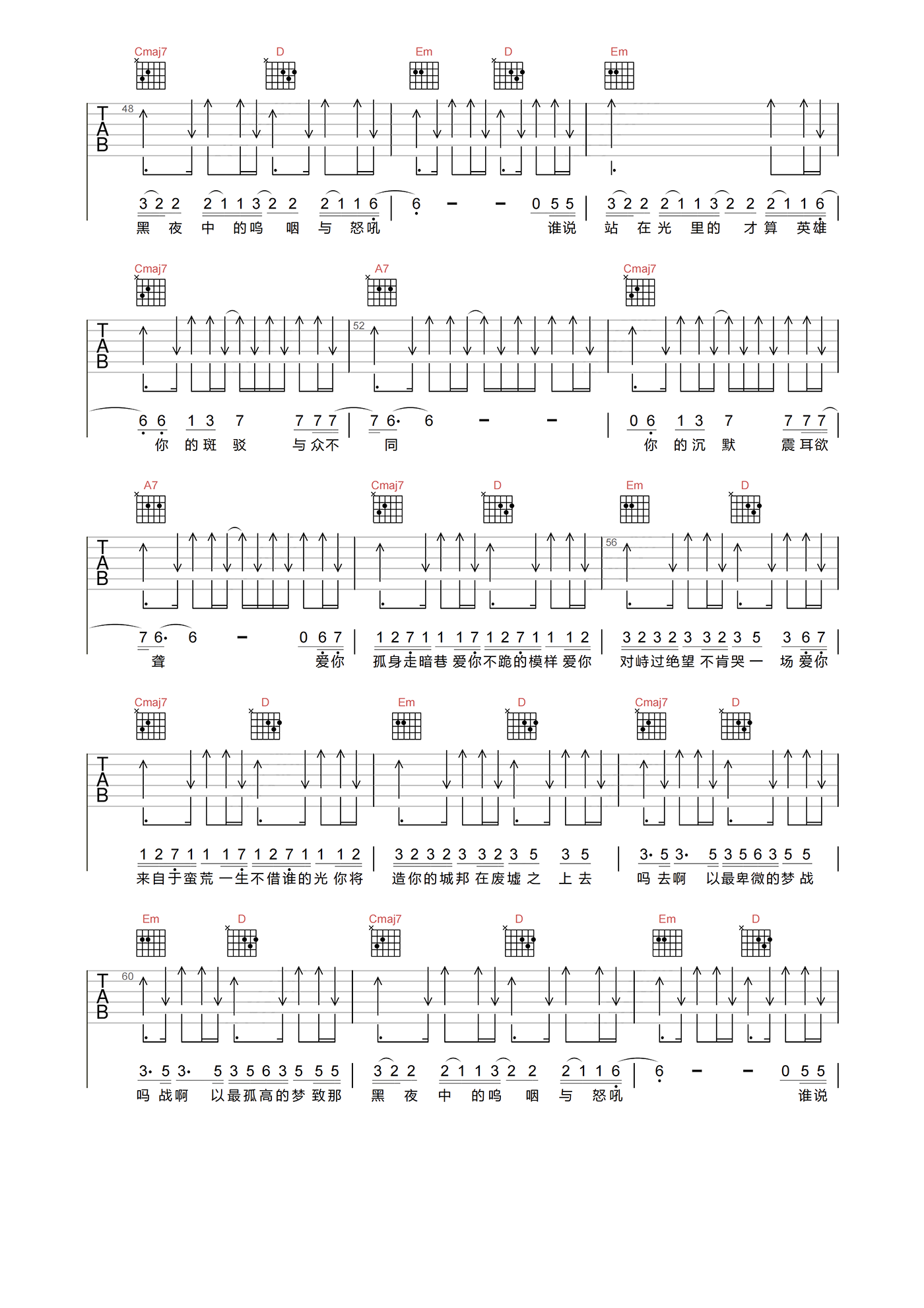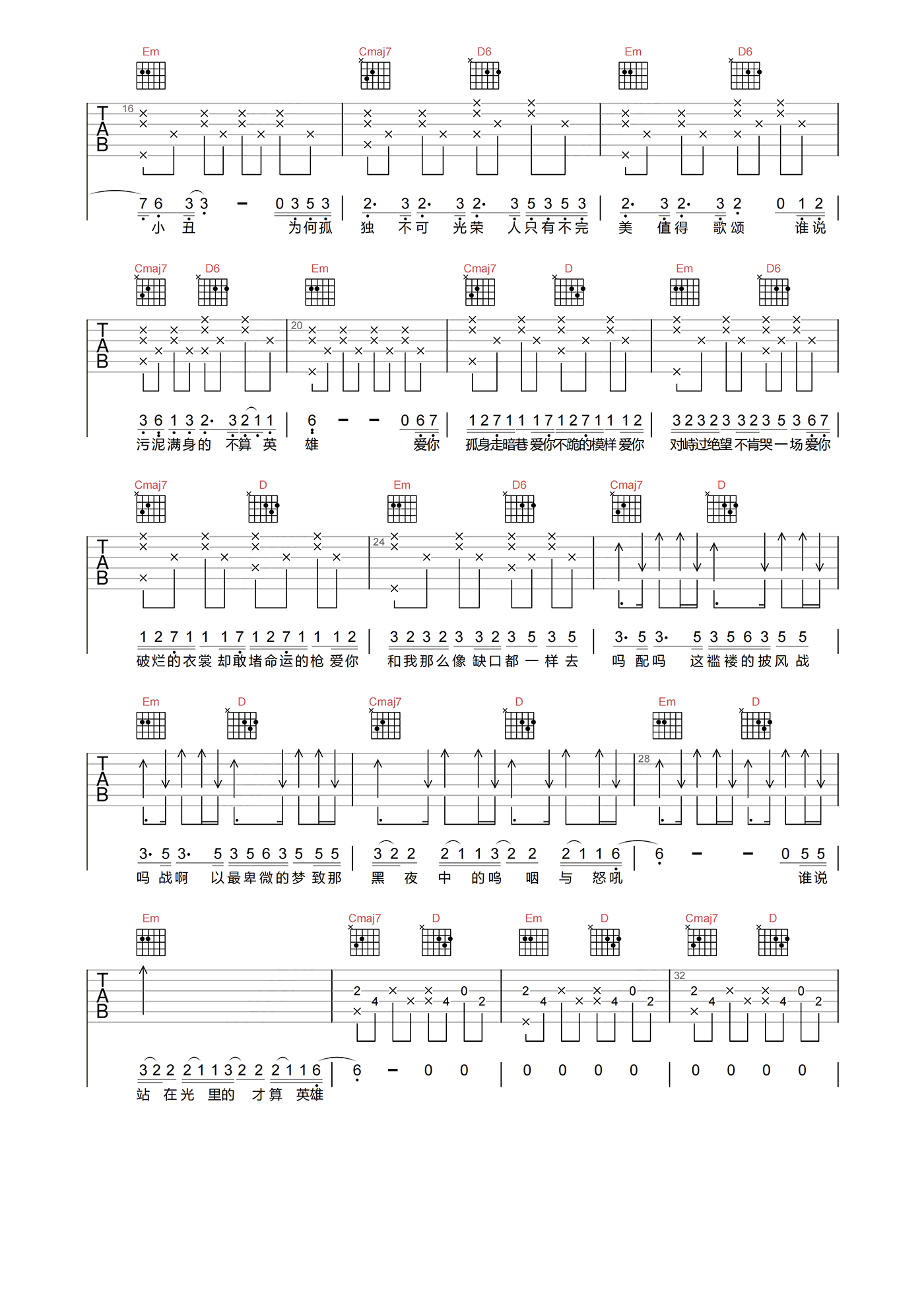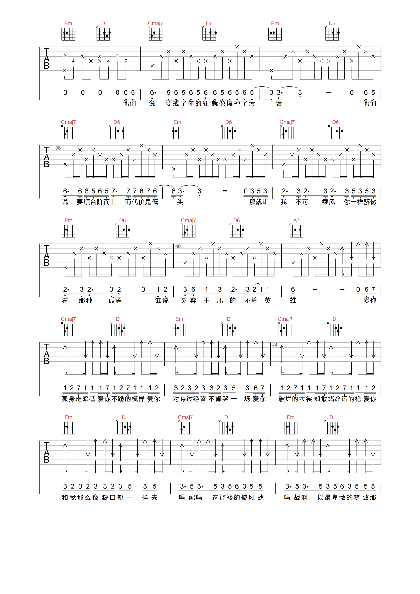 当前位置:琴谱网>吉他弹唱>孤勇者