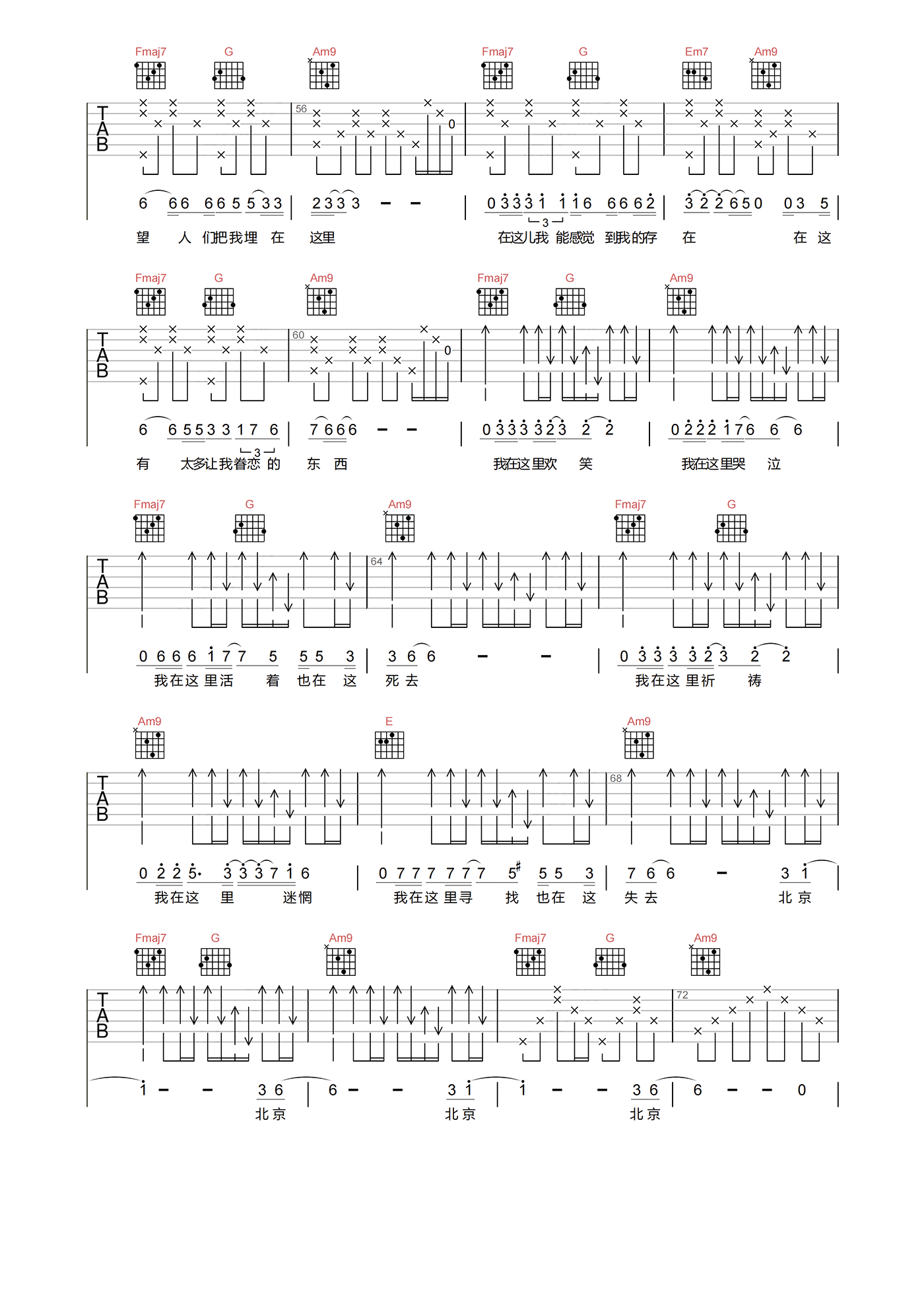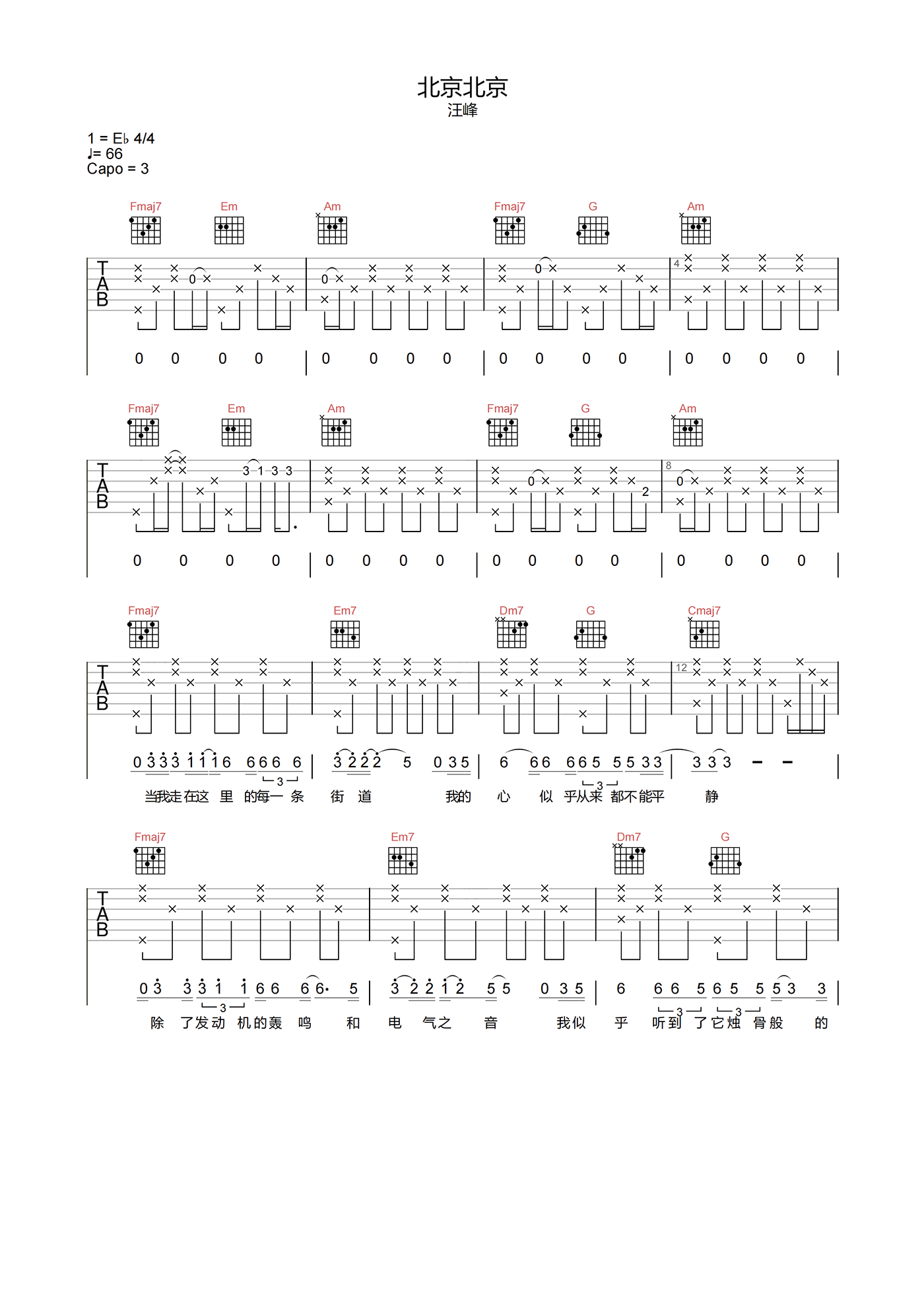 北京北京吉他谱 - 汪峰 - C调吉他弹唱谱 - 原版