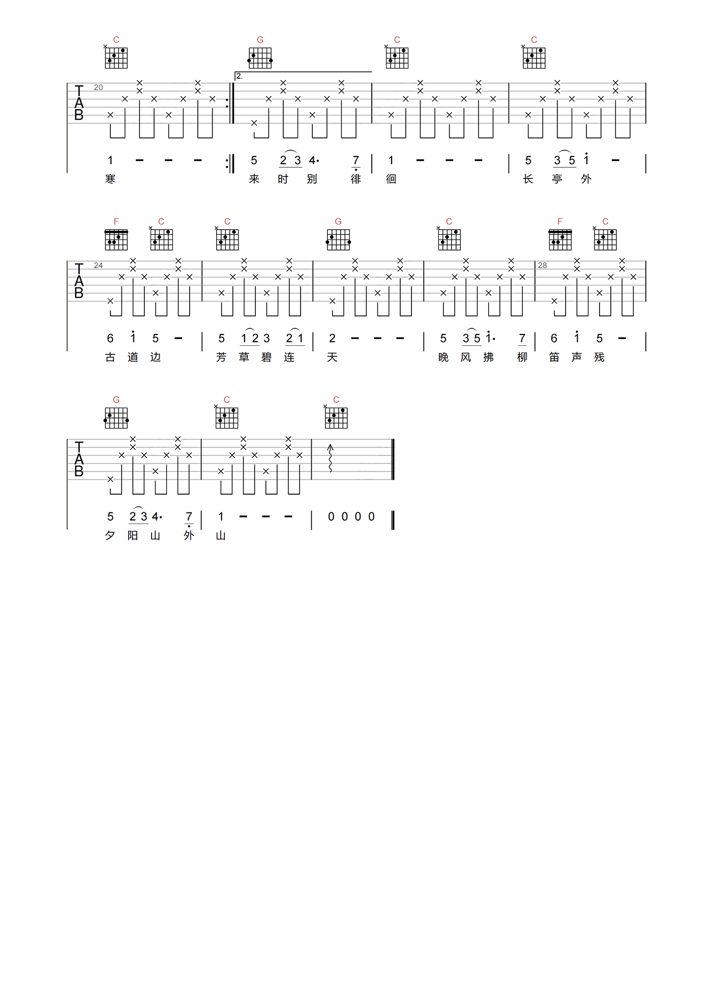 送别吉他谱 - 李叔同 - C调吉他弹唱谱 - 原版