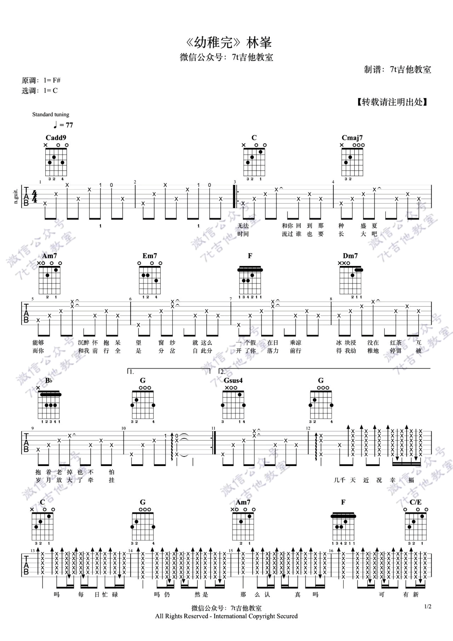 当前位置:琴谱网>吉他弹唱>幼稚完