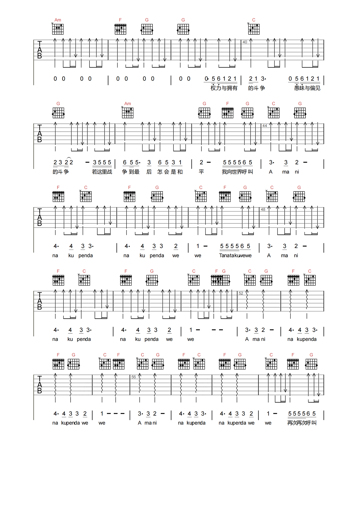 当前位置:琴谱网>吉他弹唱>AMANI