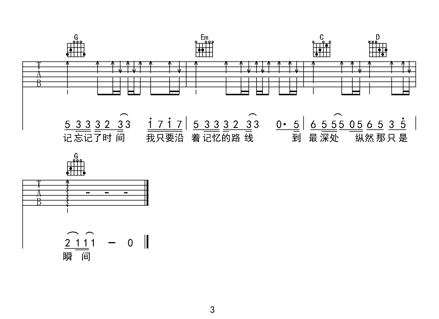 忘记时间吉他谱 - 胡歌 - G调吉他弹唱谱 - 原版