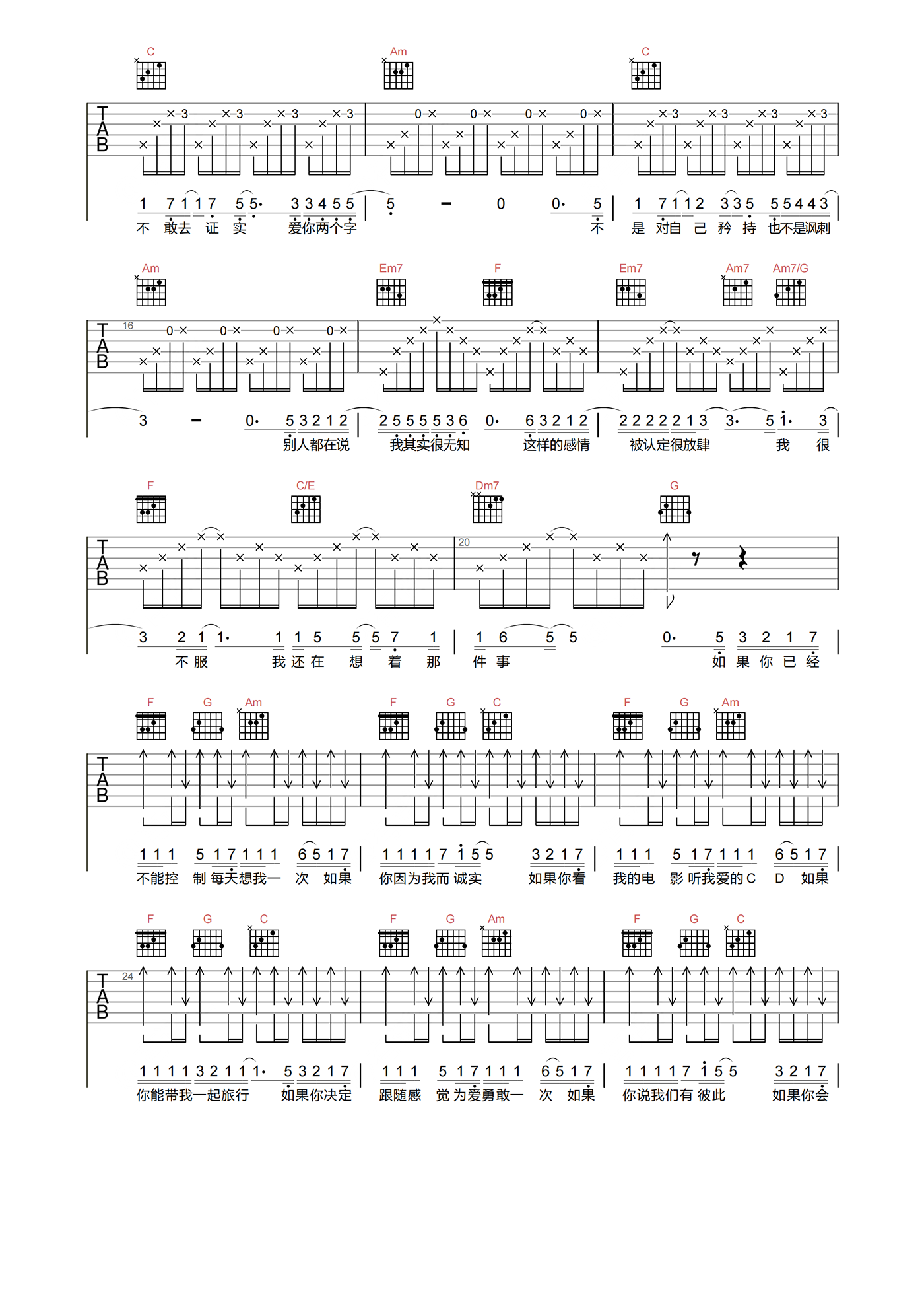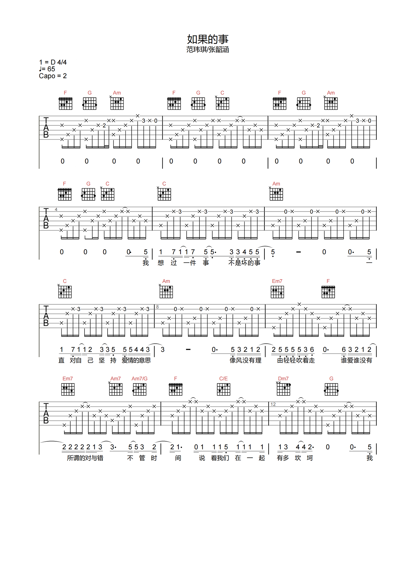 如果的事吉他谱 - 范玮琪/张韶涵 - C调吉他弹唱谱 - 原版