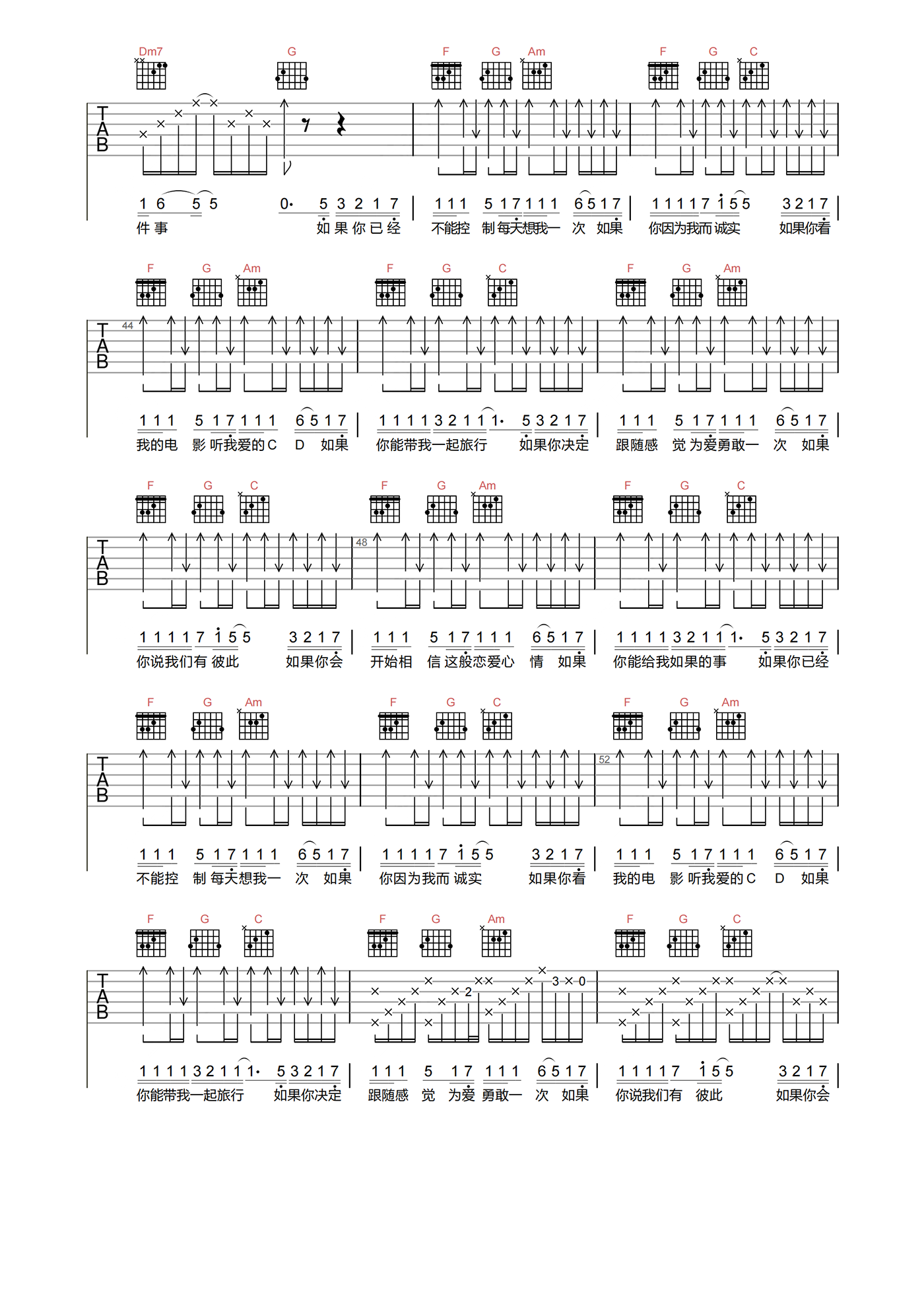当前位置:琴谱网>吉他弹唱>如果的事