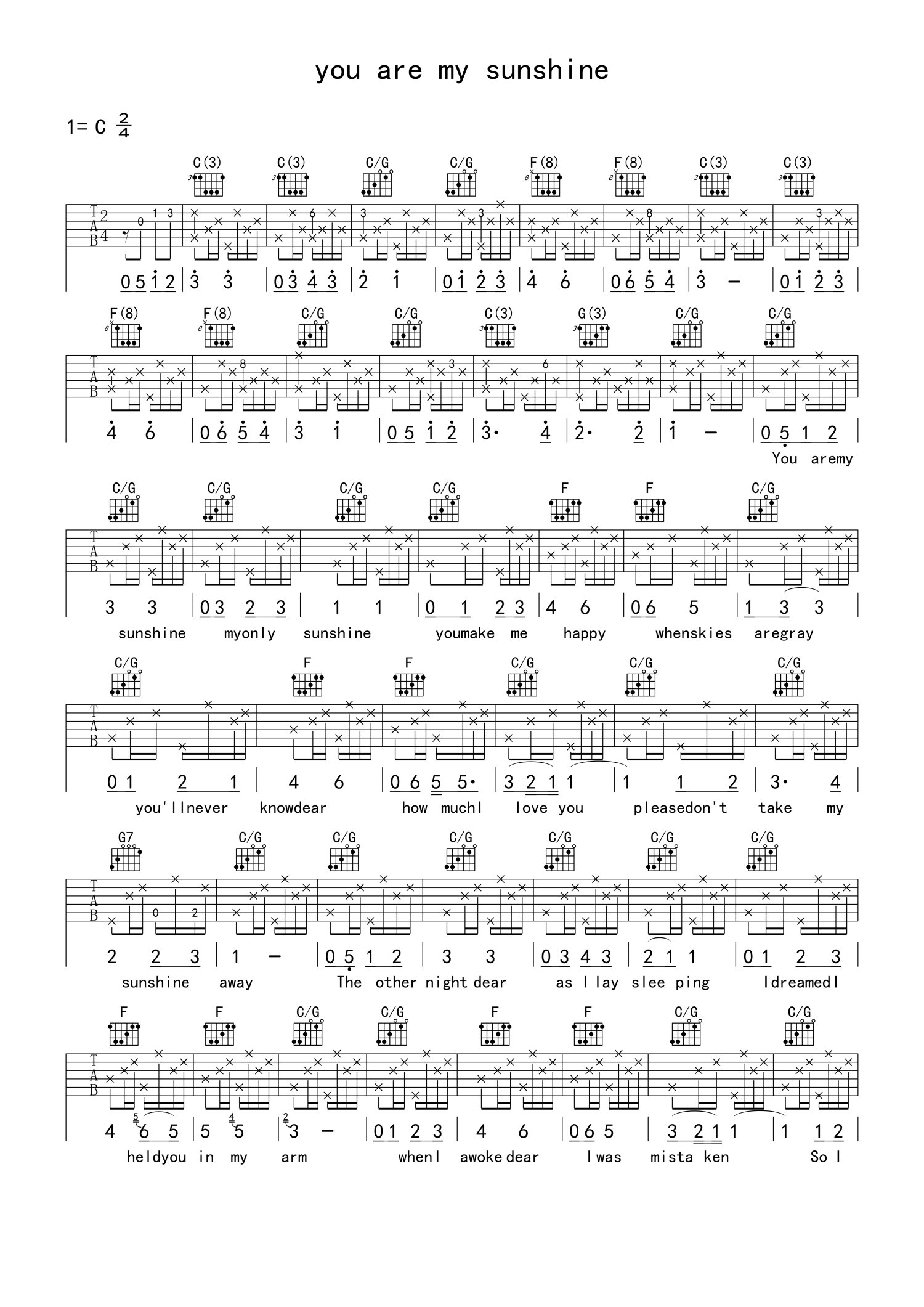 • you are my sunshine吉他谱 - C调吉他弹唱谱第1张