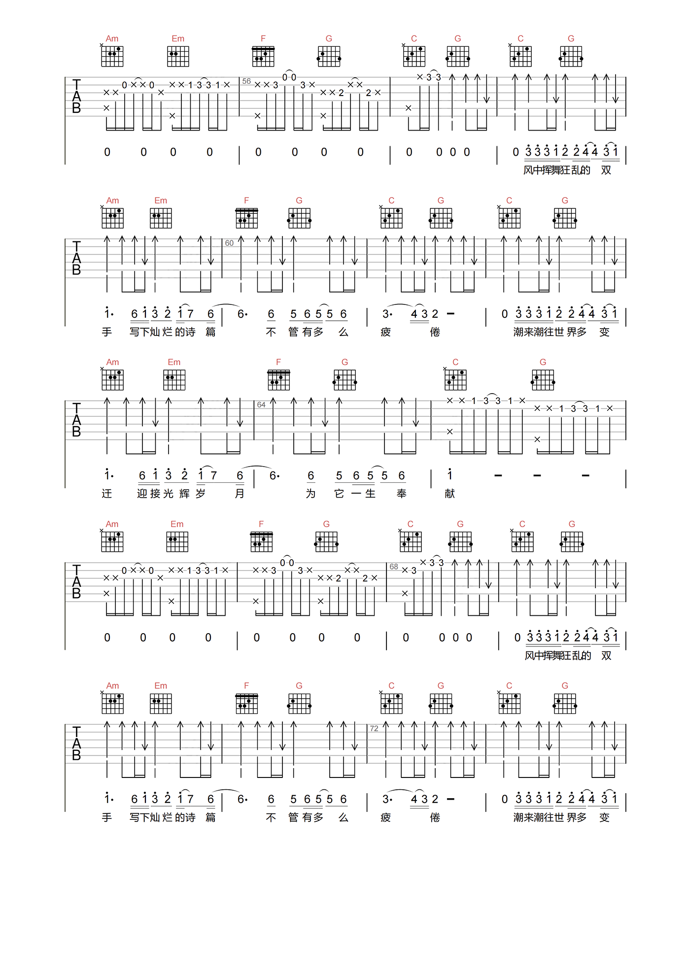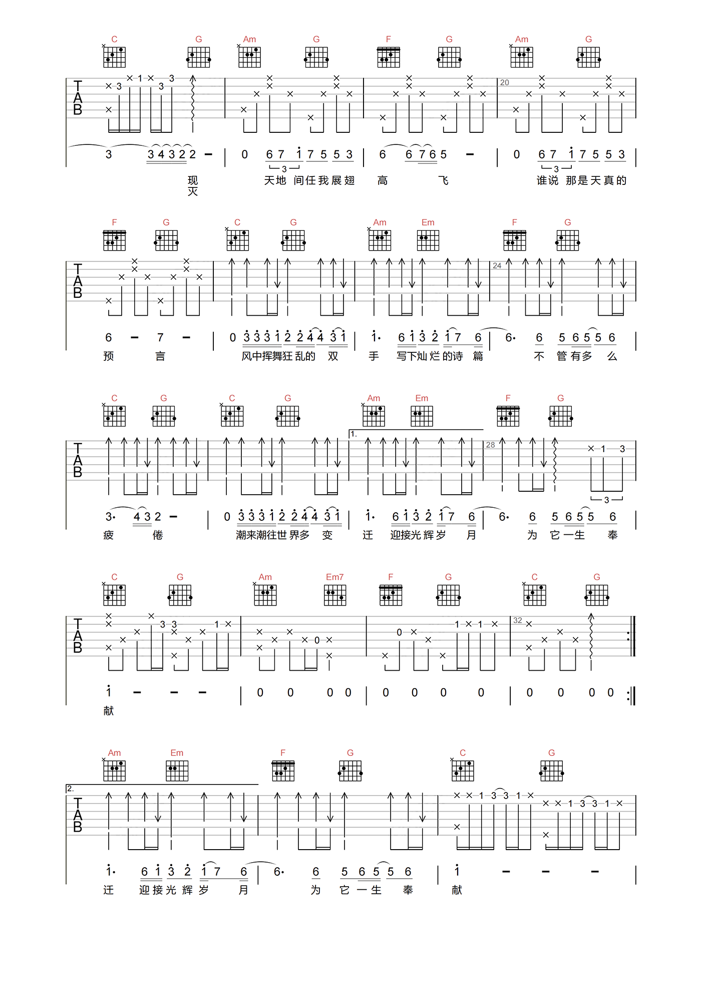 当前位置:琴谱网>吉他弹唱>光辉岁月
