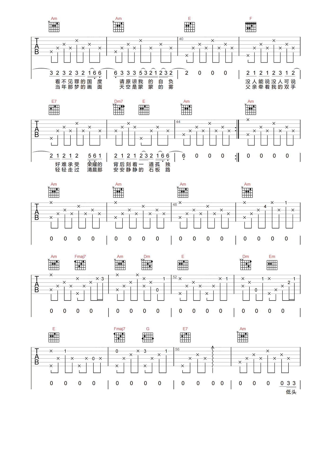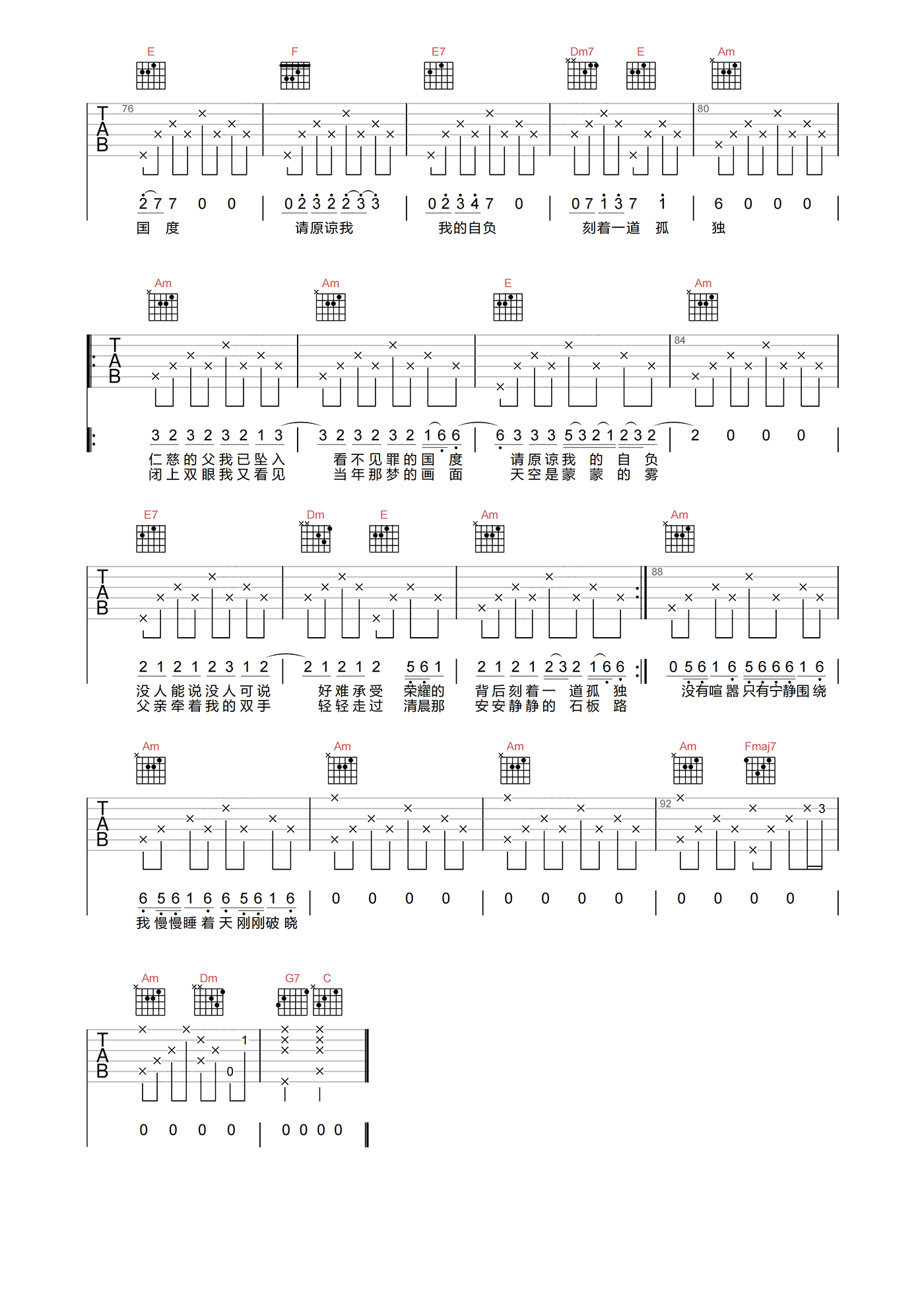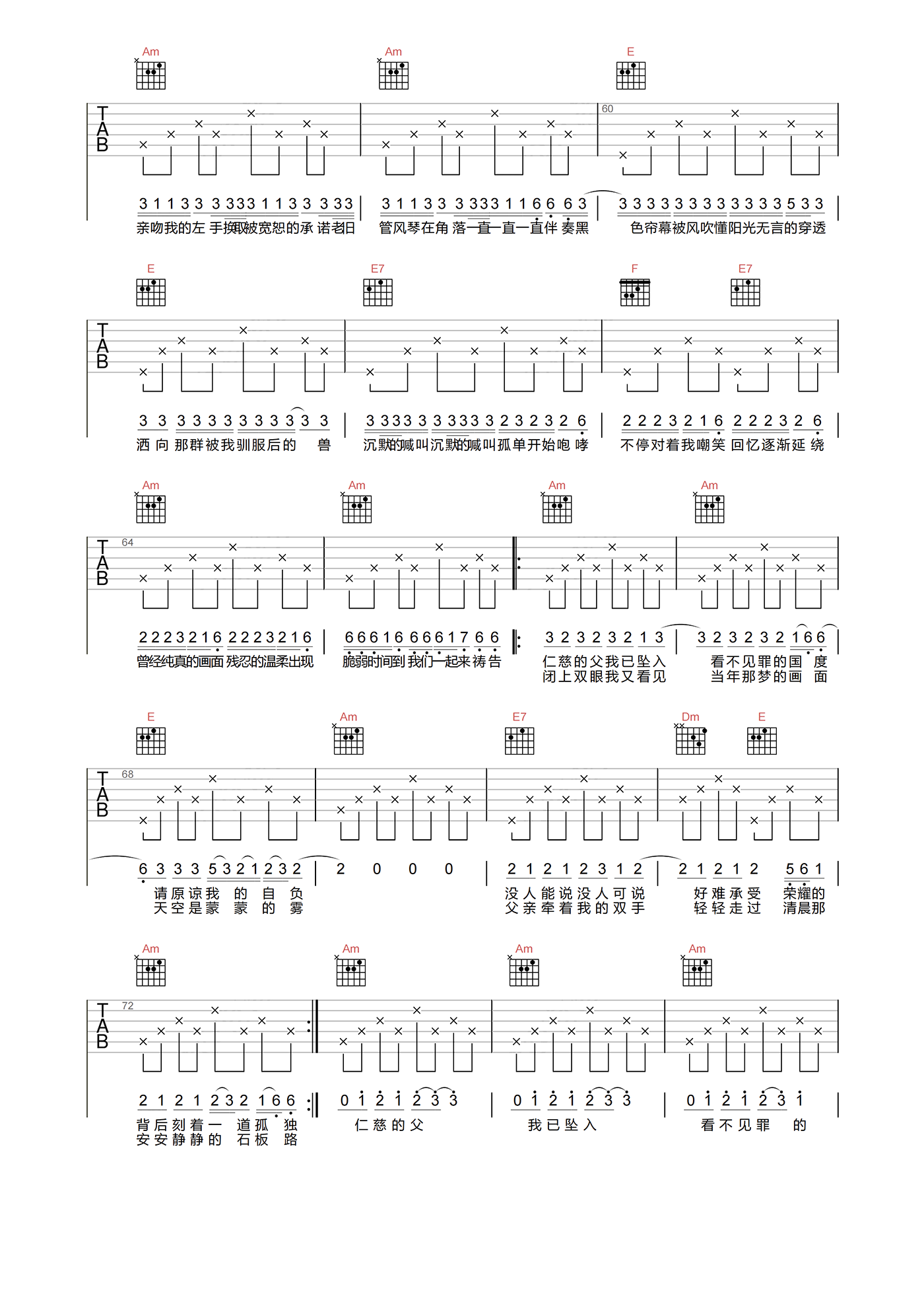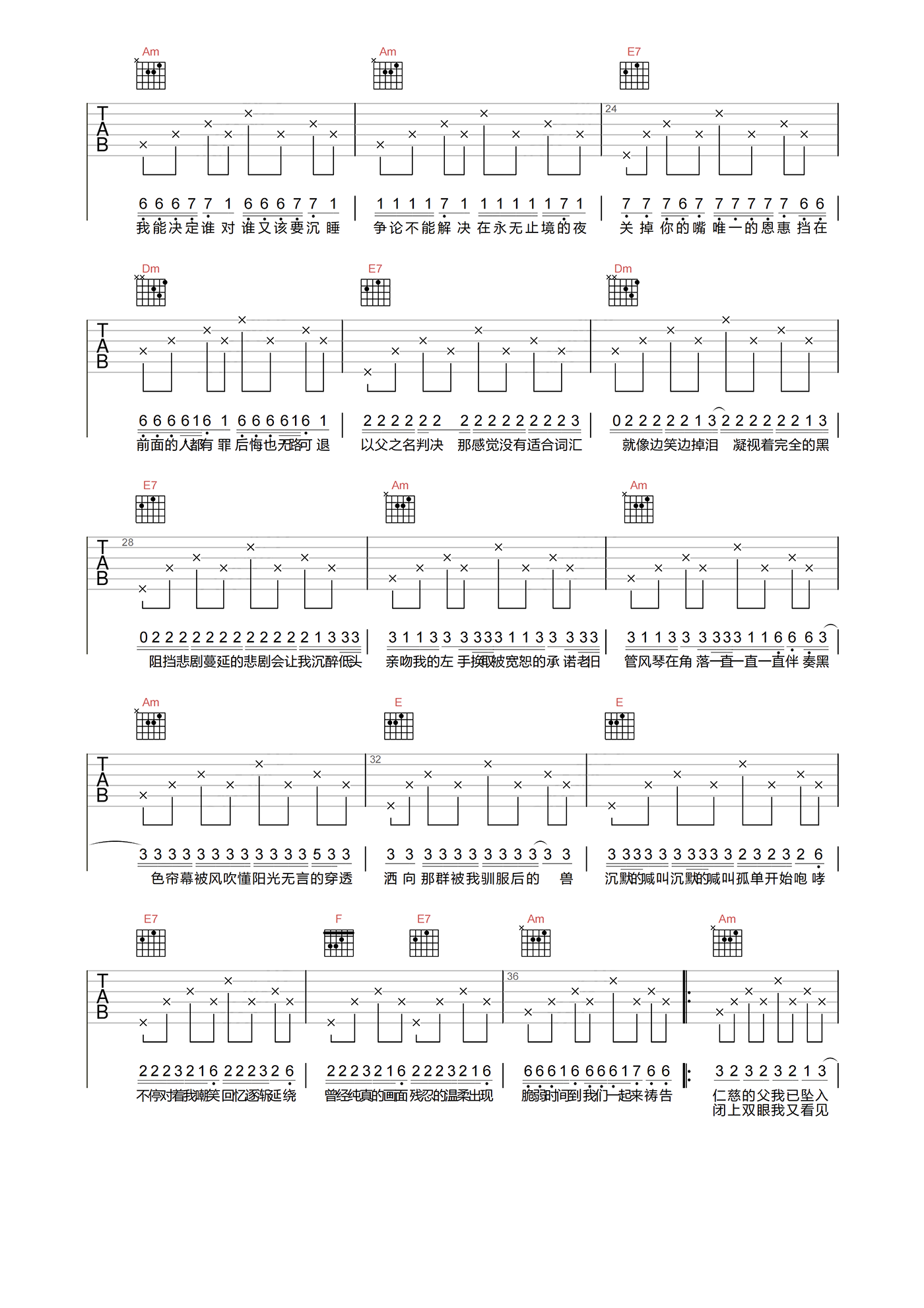 当前位置:琴谱网>吉他弹唱>以父之名