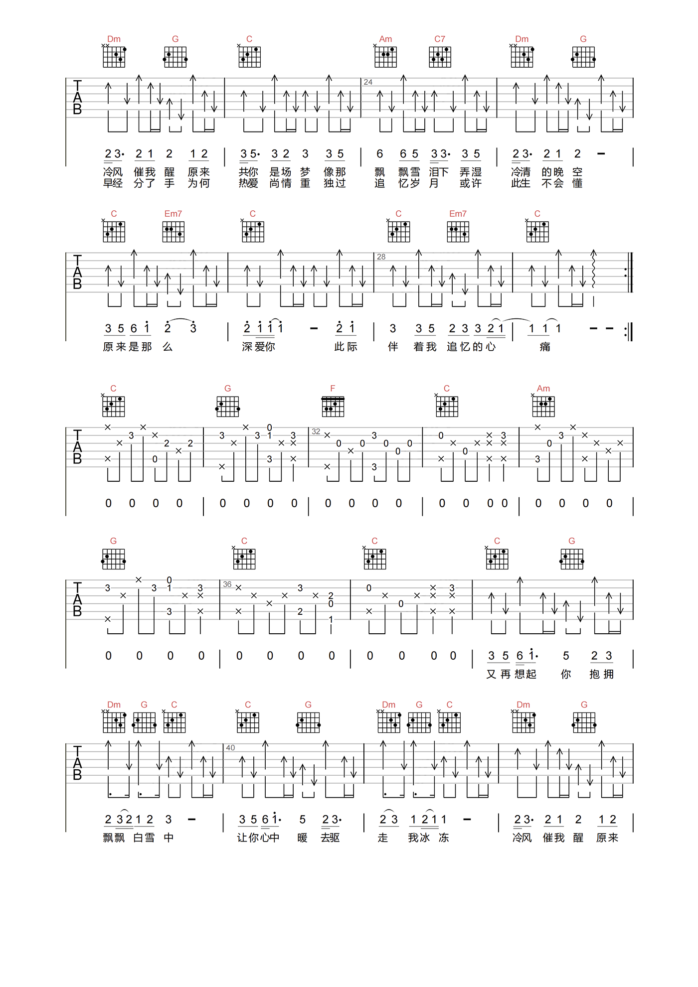 当前位置:琴谱网>吉他弹唱>飘雪