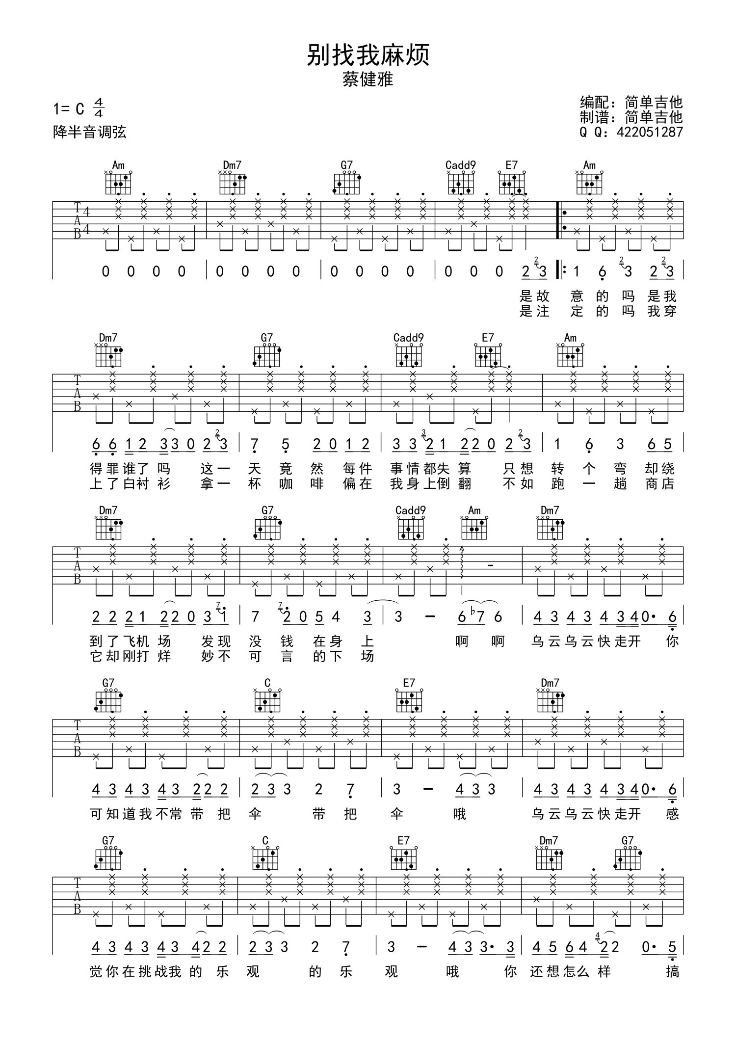 • 别找我麻烦吉他谱 - 蔡健雅 - C调吉他弹唱谱第1张