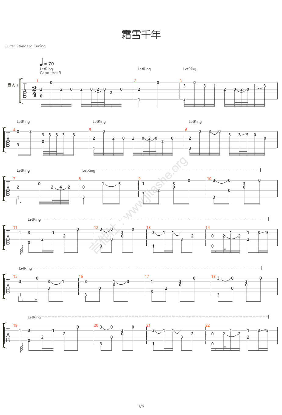 霜雪千年吉他谱 - 双笙 - 吉他独奏谱