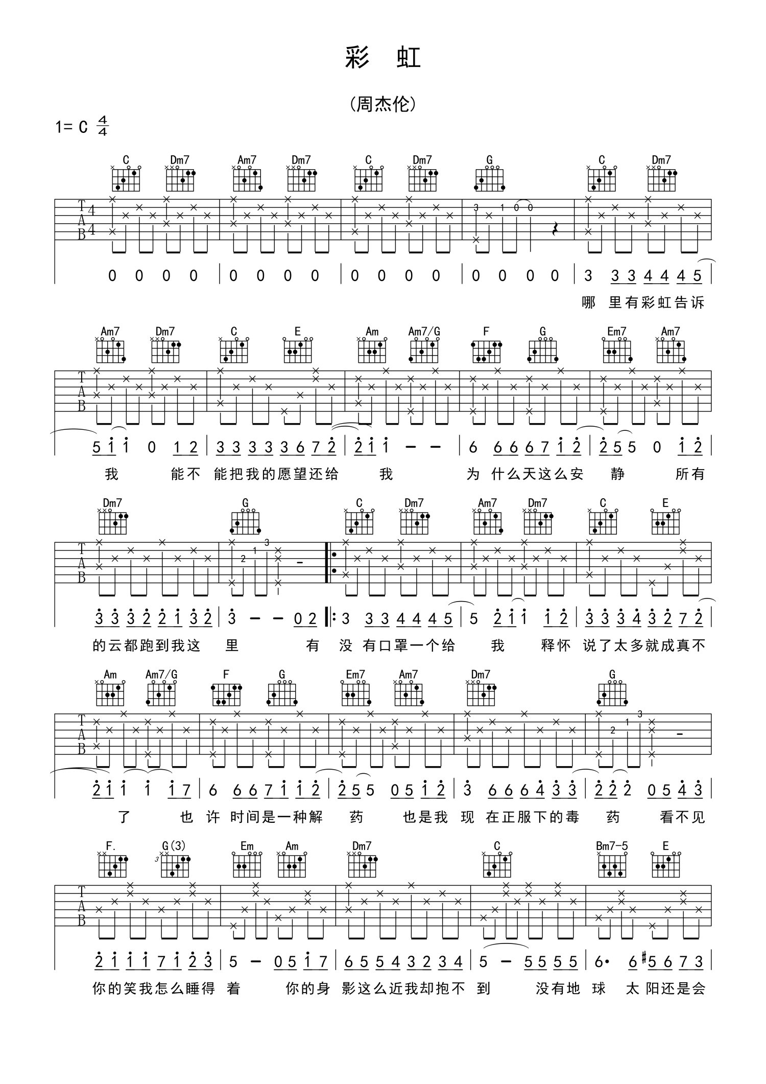 • 彩虹吉他谱 - 周杰伦 - C调吉他弹唱谱第1张