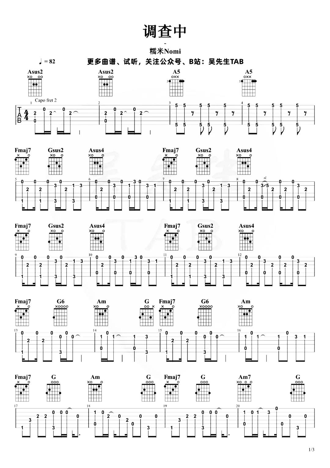 调查中吉他谱 - 糯米Nomi - 吉他独奏谱