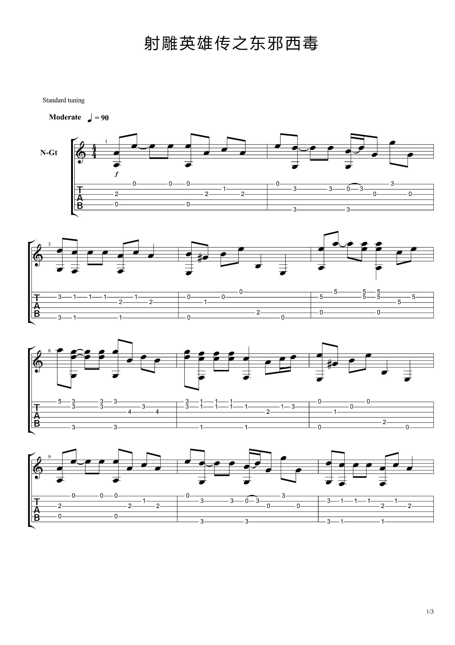 射雕之东邪西毒吉他谱 - 主题曲 - 吉他独奏谱