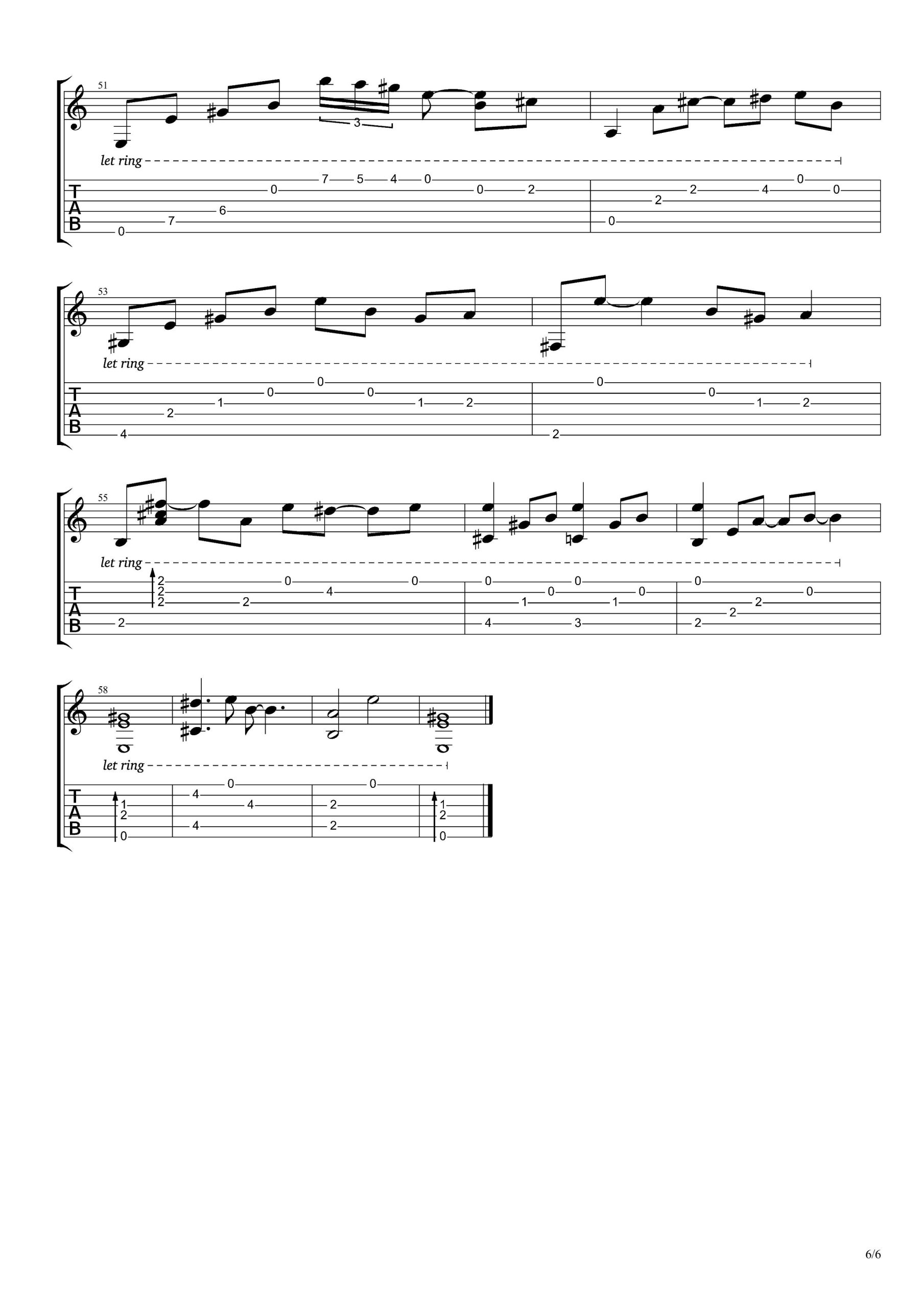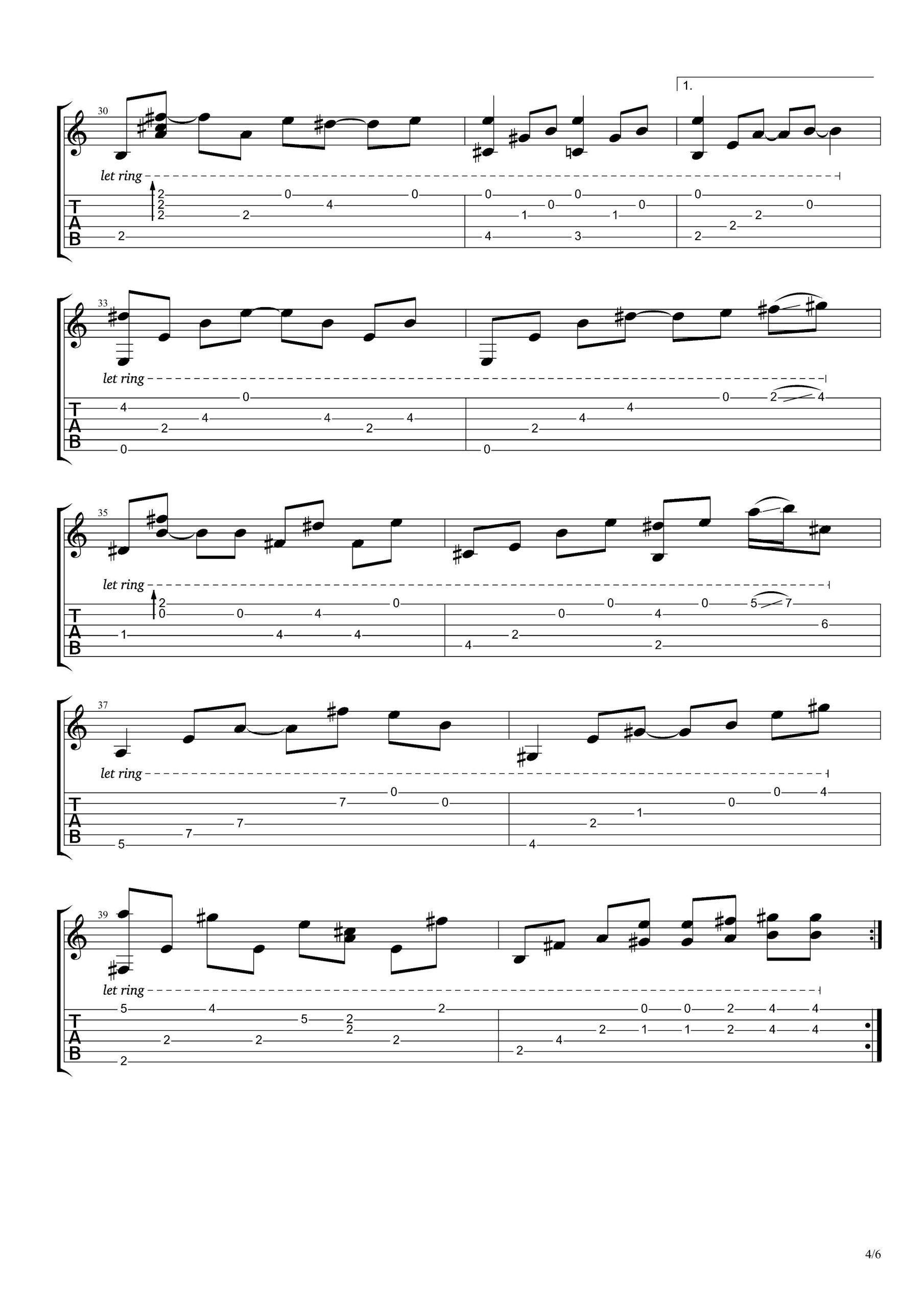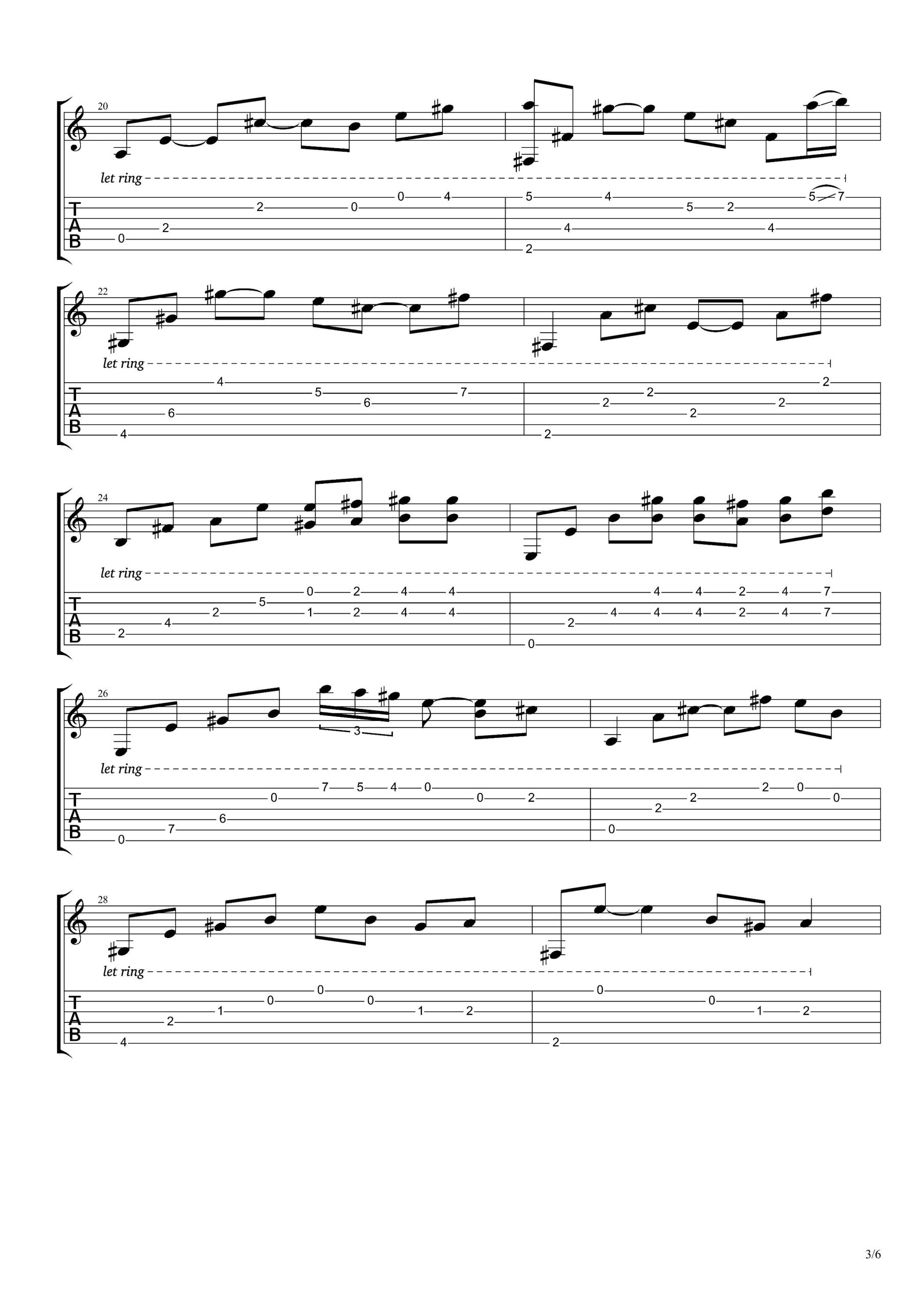 曲谱介绍: Newok指弹谱,黄家伟独奏版本,非常舒缓温暖的一首曲子,静静聆听,治愈人心,让我们在曲折的岁月里感到一丝美好的希望,充满着憧憬。 《Newok》指弹吉他谱,共6张高清图片谱,速度控制在88拍每分钟,节奏4/4拍,指弹难度2级较简单。 指弹谱详情